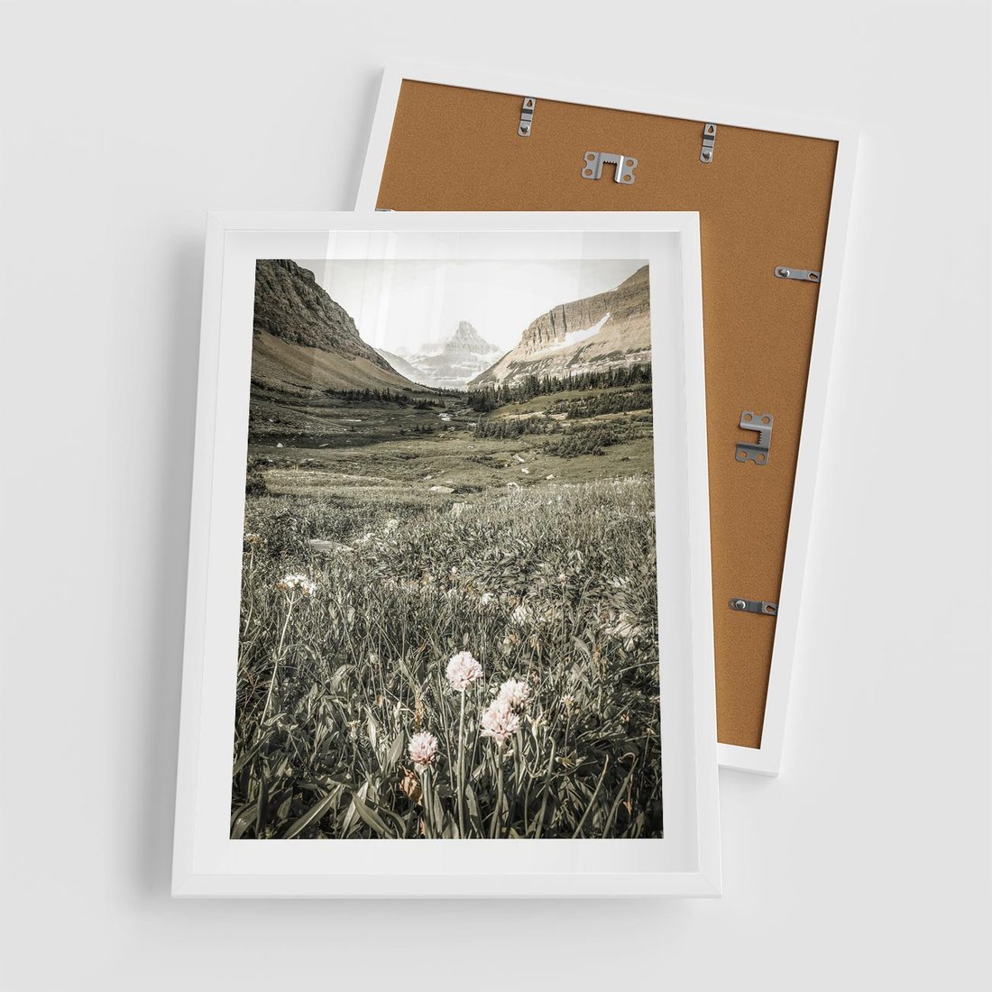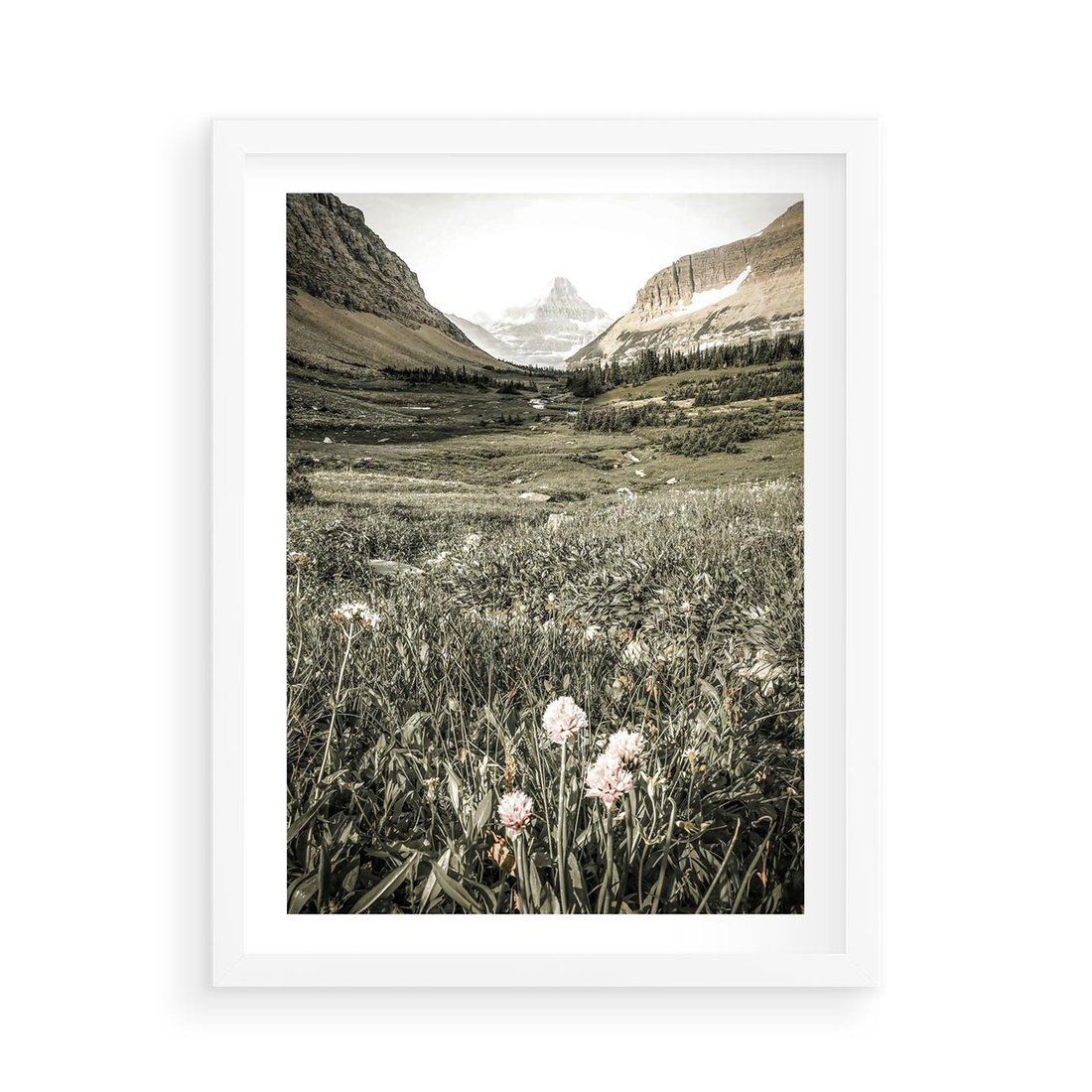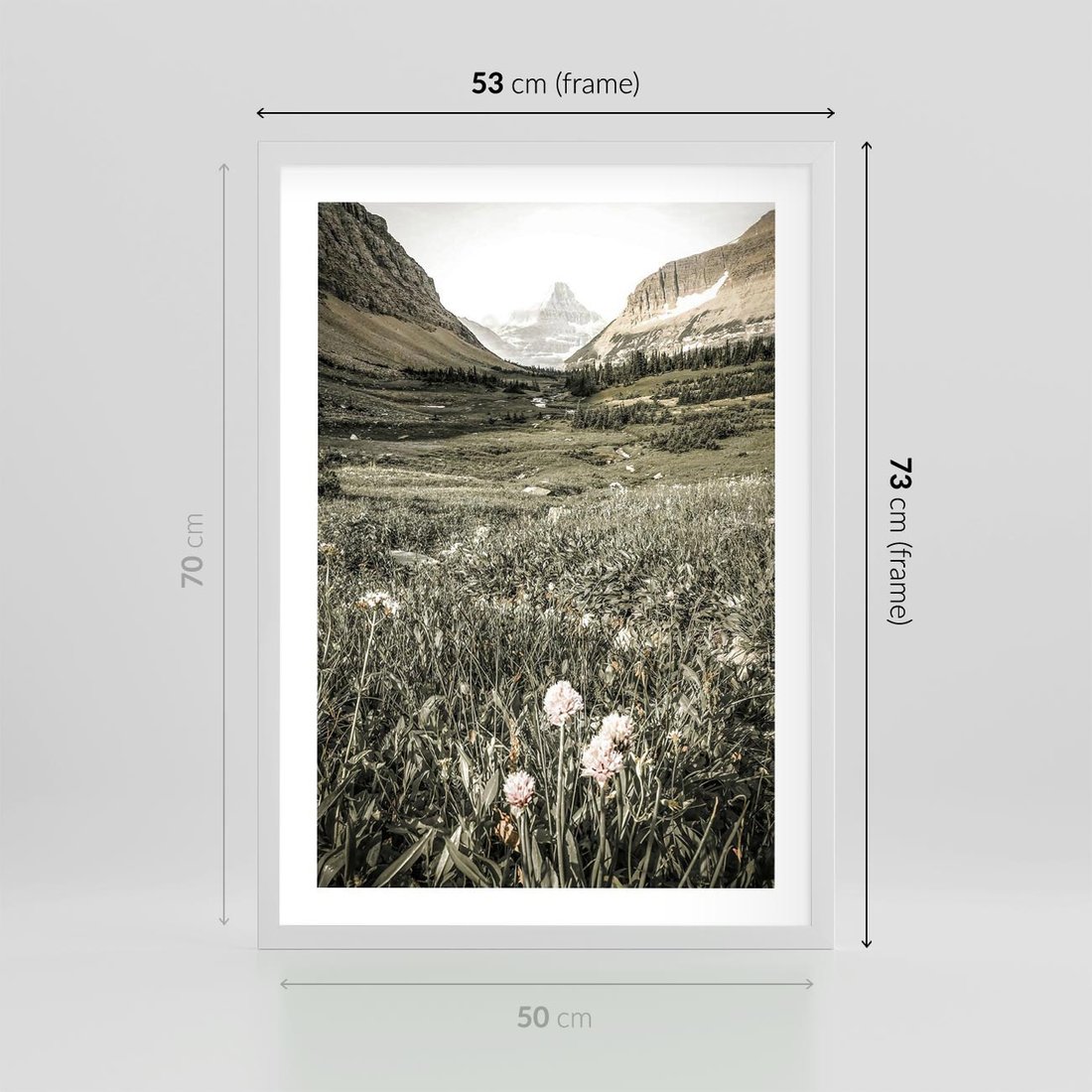 Plakat w ramie 50x70 - Nostalgiczne Góry - górski krajobraz, łaka w górach - rama biała