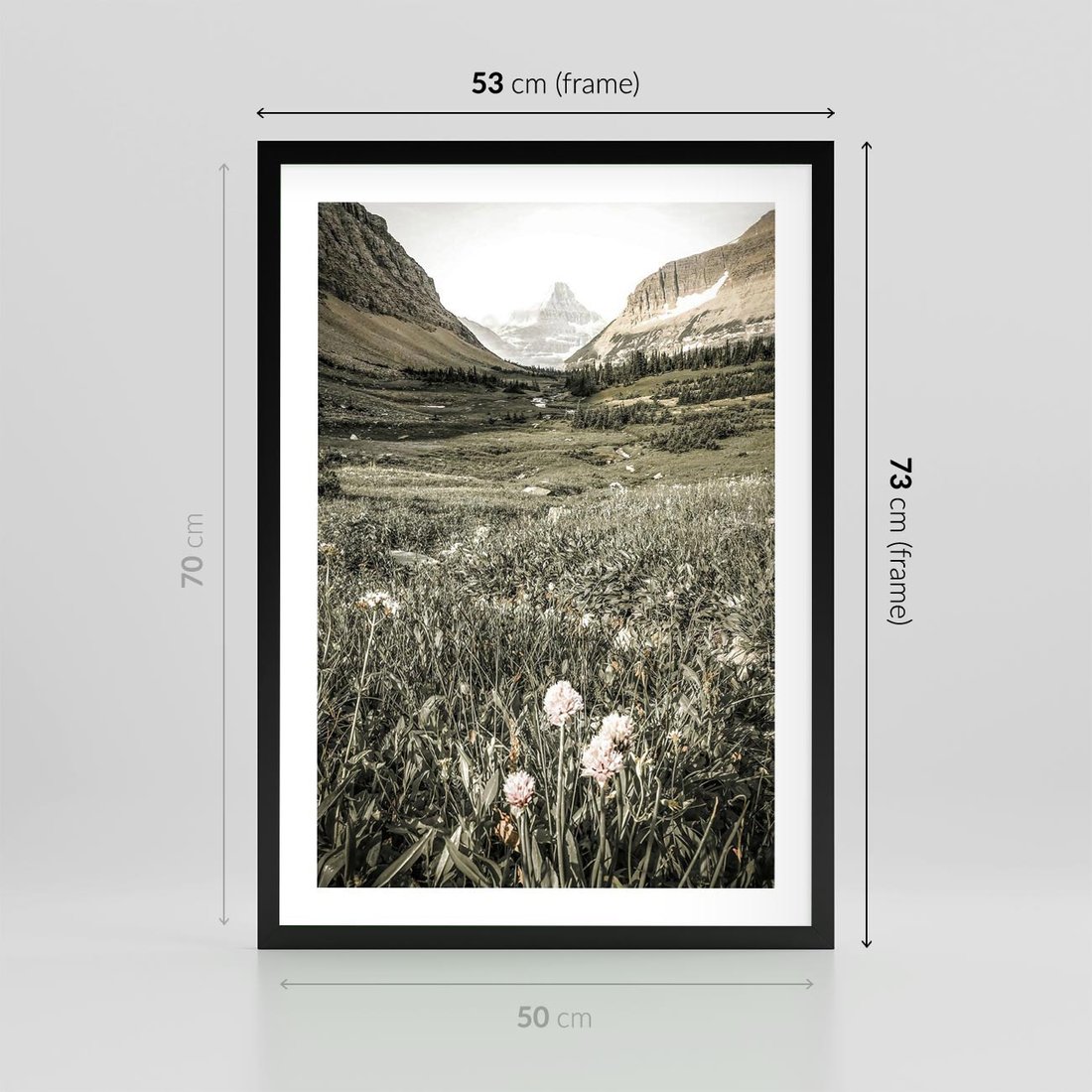 Plakat w ramie 50x70 - Nostalgiczne Góry - górski krajobraz, łaka w górach - rama czarna