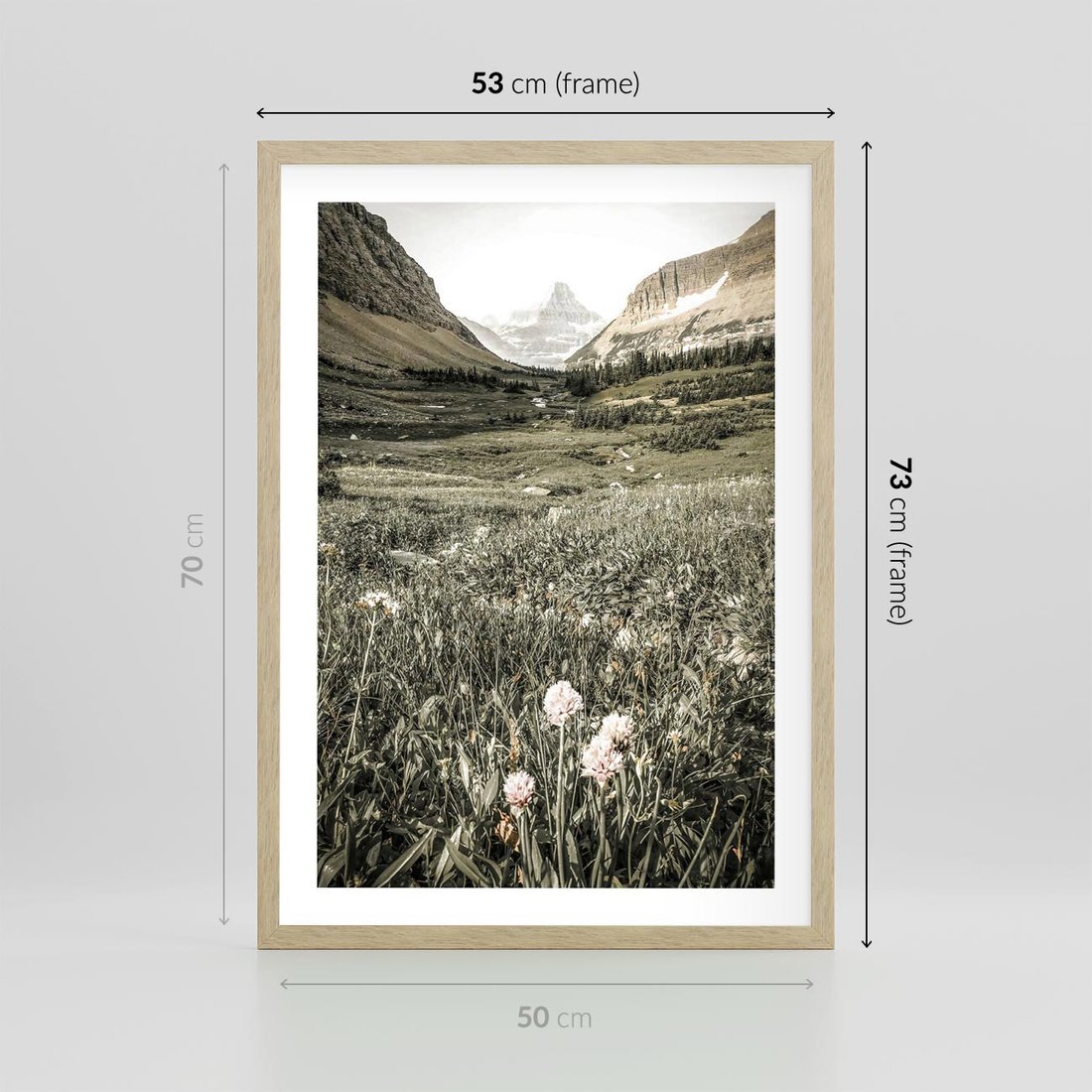 Plakat w ramie 50x70 - Nostalgiczne Góry - górski krajobraz, łaka w górach - rama drewno