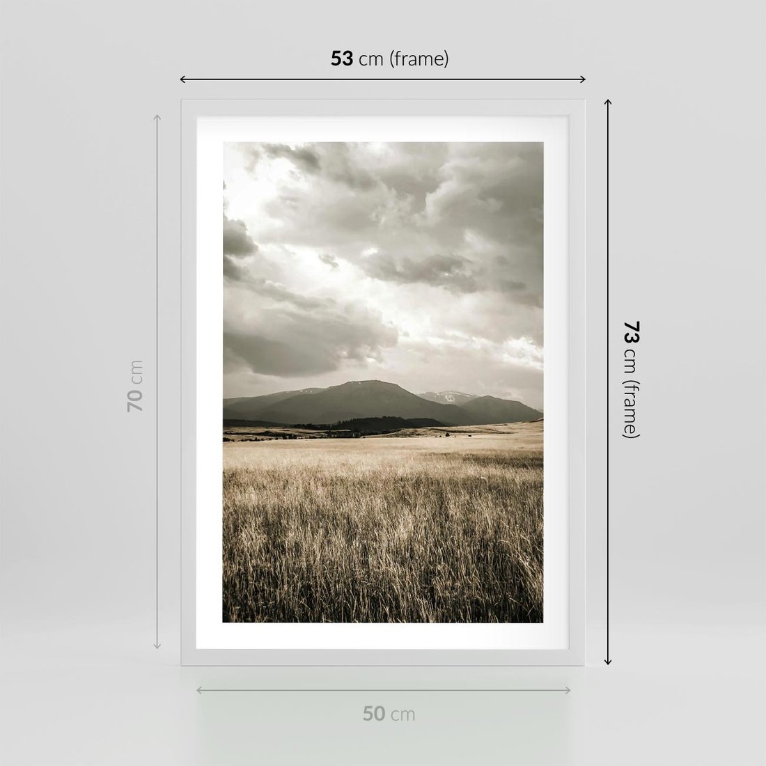 Plakat w ramie 50x70 - Nostalgiczny Krajobraz - pole, krajobraz - rama biała