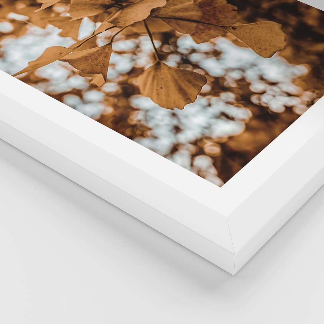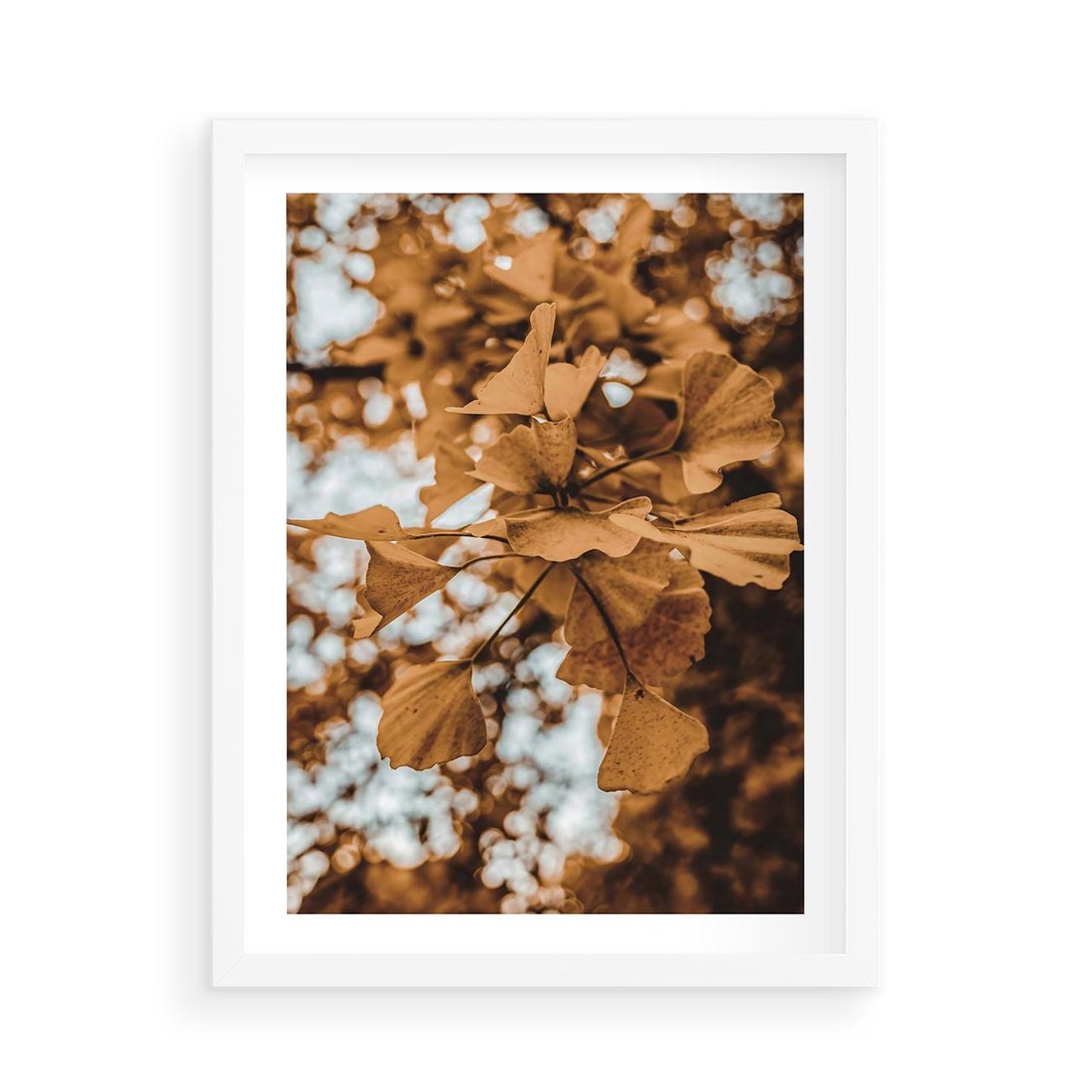 Plakat w ramie 50x70 - Nostalgiczny Miłorząb - miłorząb, liście - rama biała