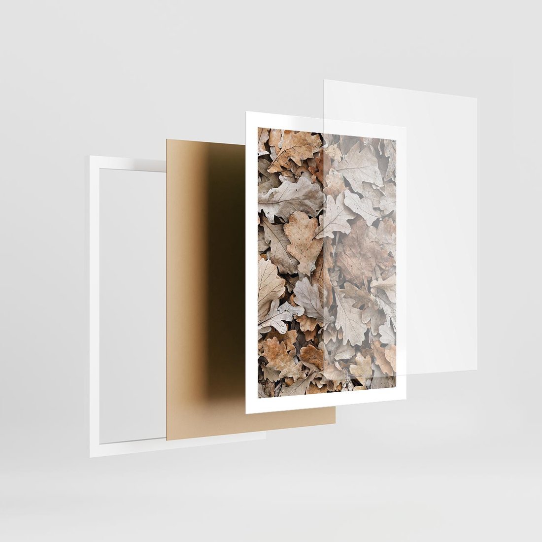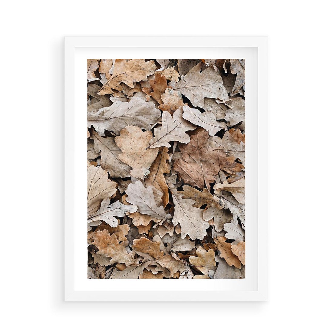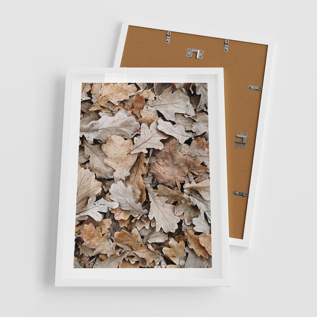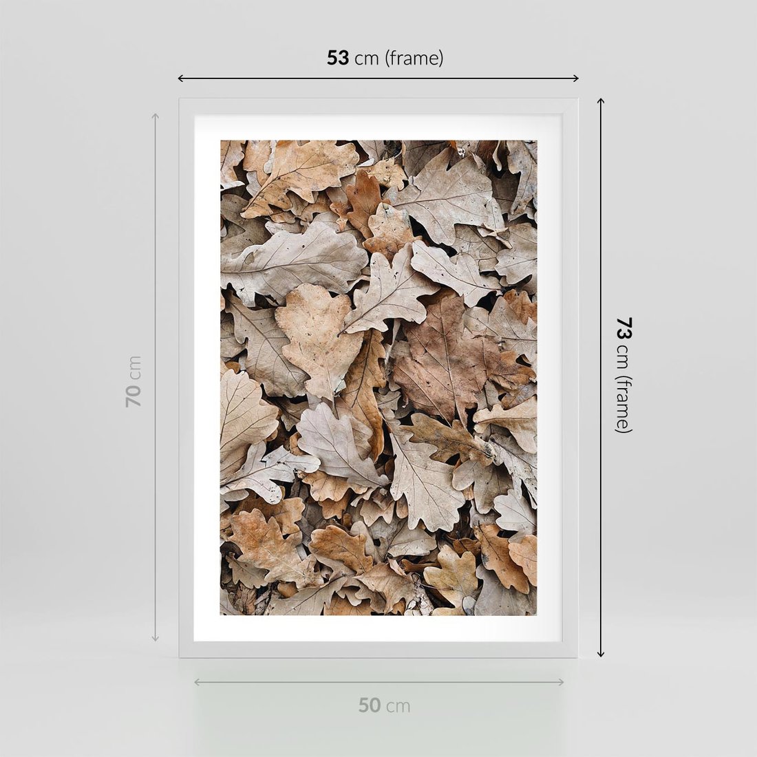 Plakat w ramie 50x70 - Nostalgiczny Pejzaż - suche liście, jesień - rama biała