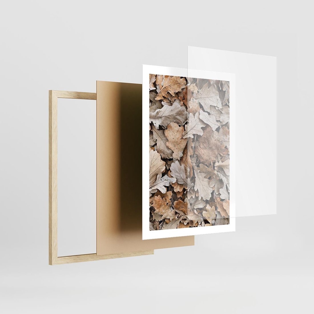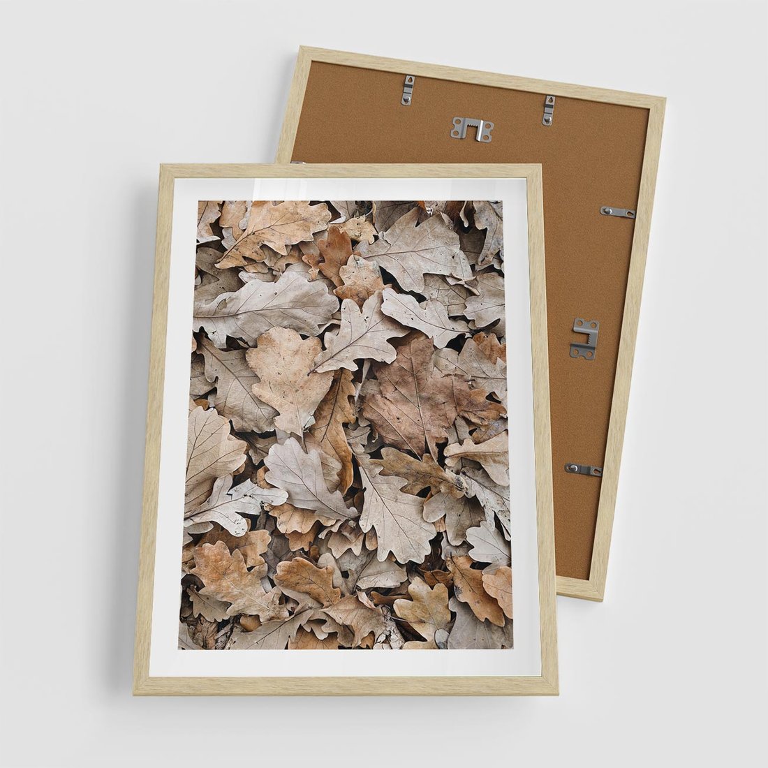 Plakat w ramie 50x70 - Nostalgiczny Pejzaż - suche liście, jesień - rama drewno