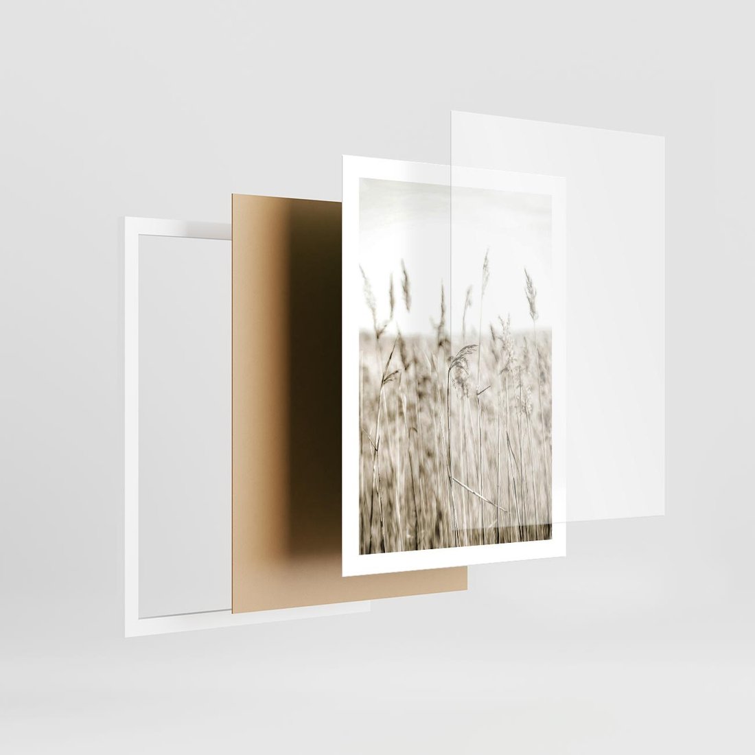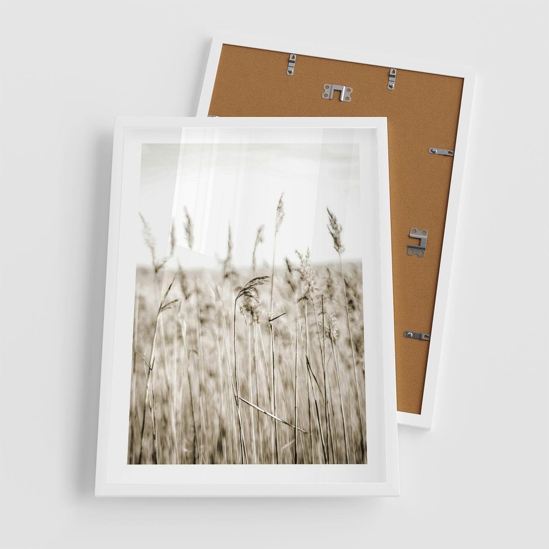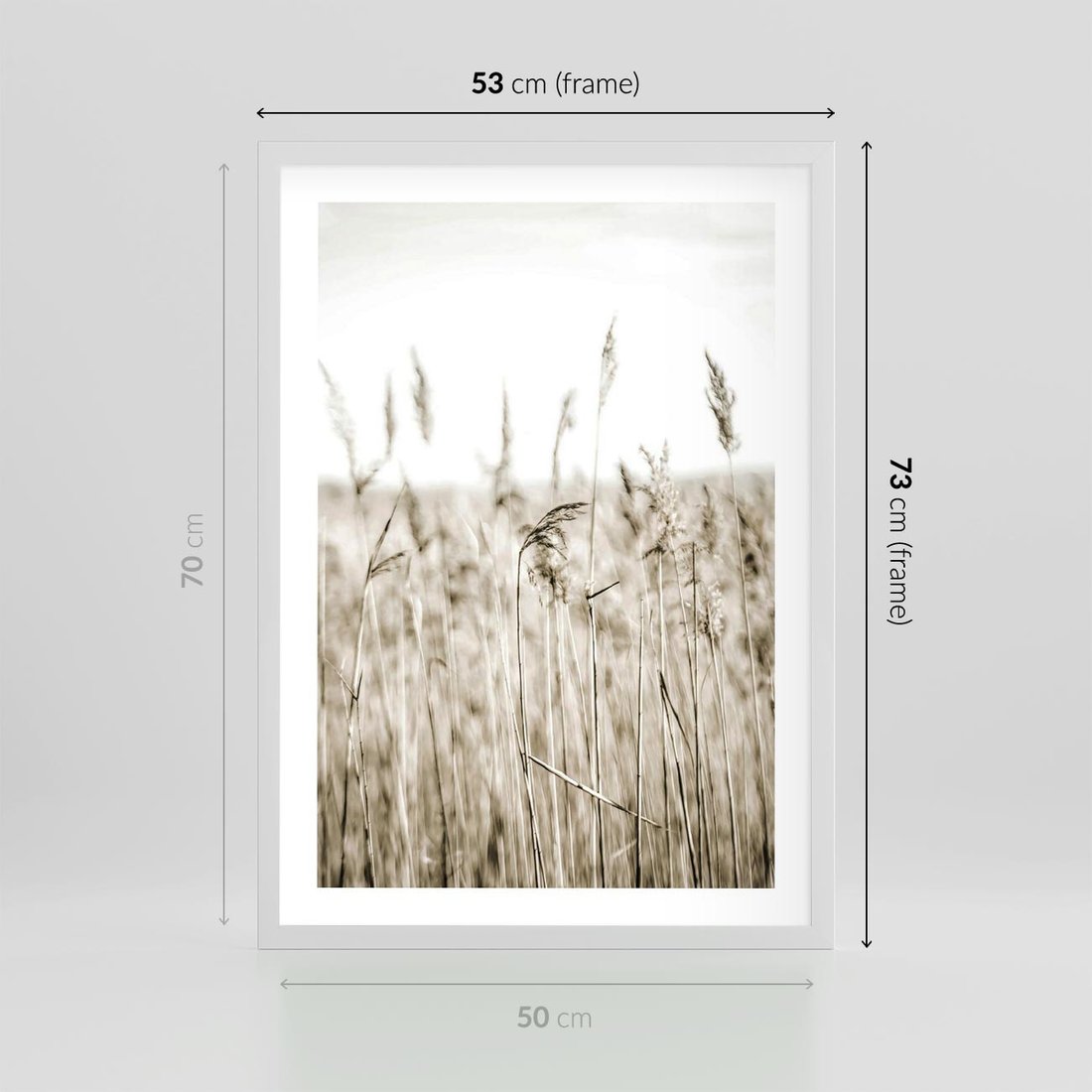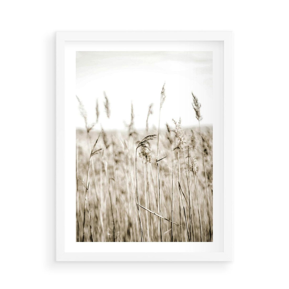 Plakat w ramie 50x70 - Nostalgiczny Pejzaż - suche trawy, pole - rama biała