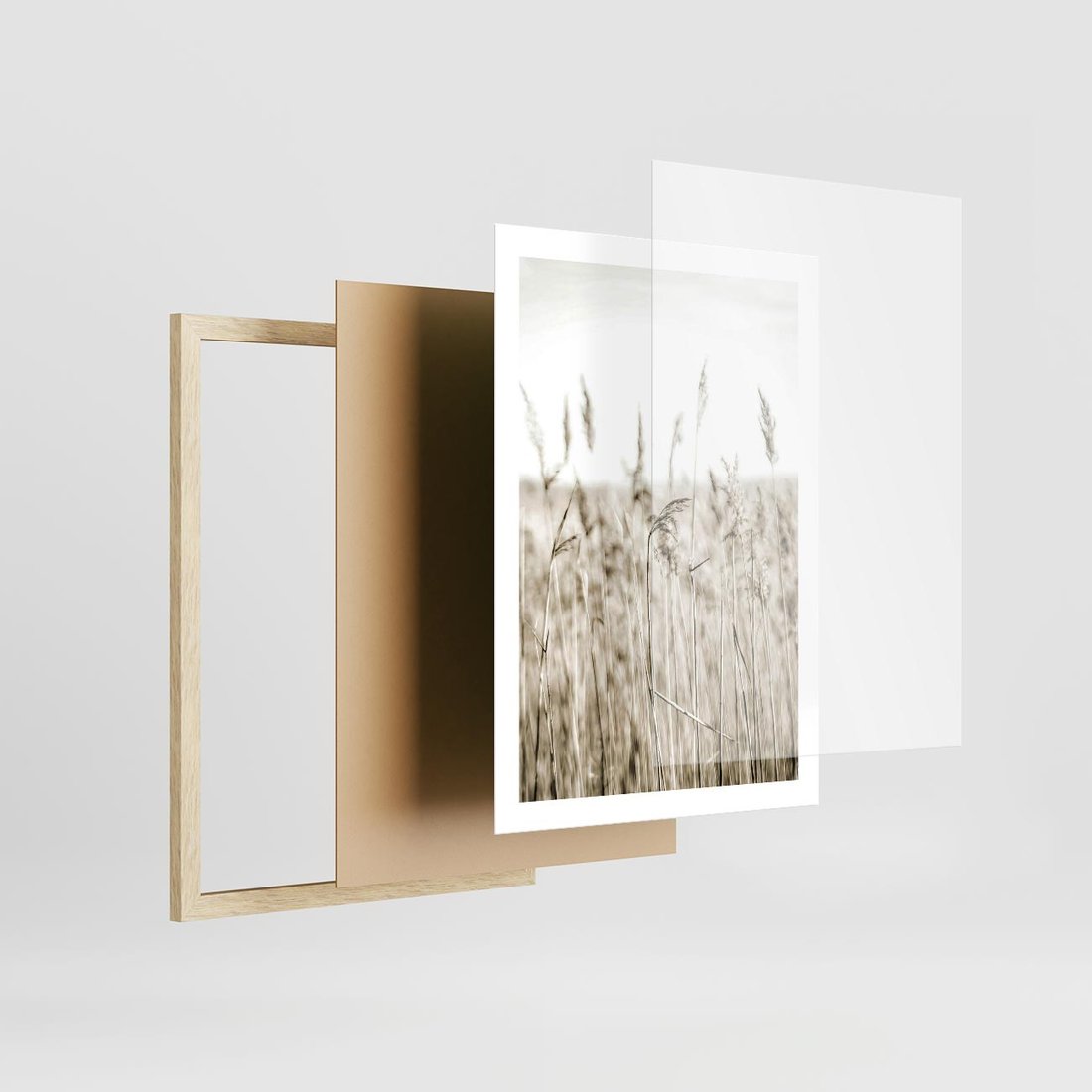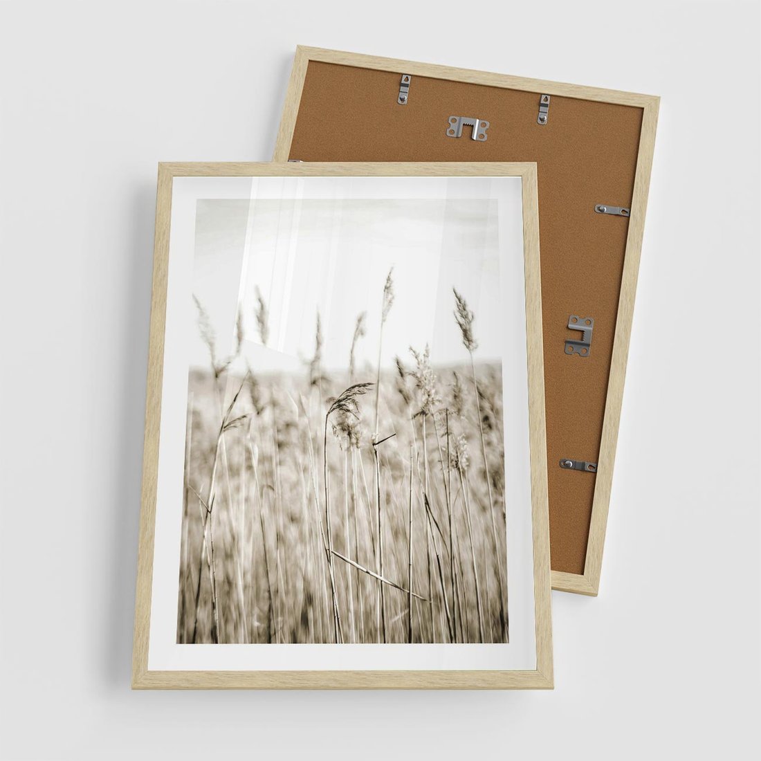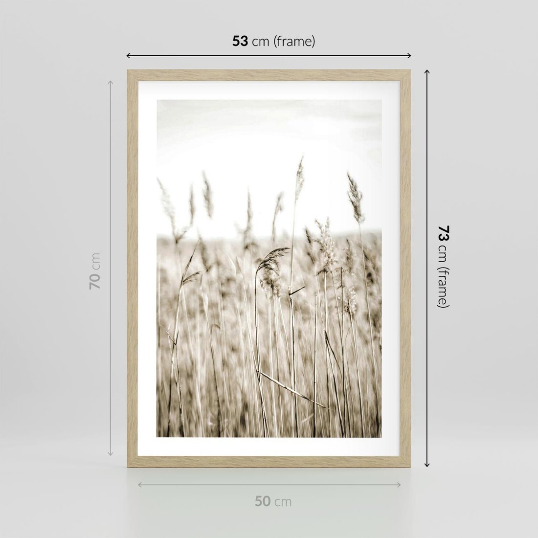 Plakat w ramie 50x70 - Nostalgiczny Pejzaż - suche trawy, pole - rama drewno