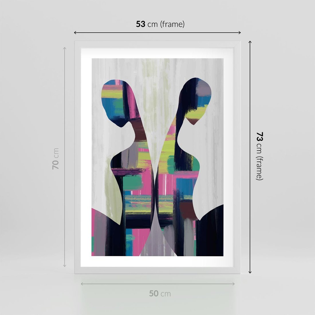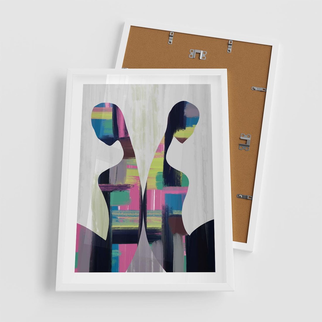 Nasz abstrakcyjny plakat to połączenie nowoczesnej sztuki z sylwetkami ludzi w dynamicznym tańcu kolorów. Intensywne barwy nadają głębi kompozycji, oddając emocje i energię. To idealny dodatek dla miłośników sztuki poszukujących unikalnej dekoracji, która wzbudzi zainteresowanie i ożywi przestrzeń.
