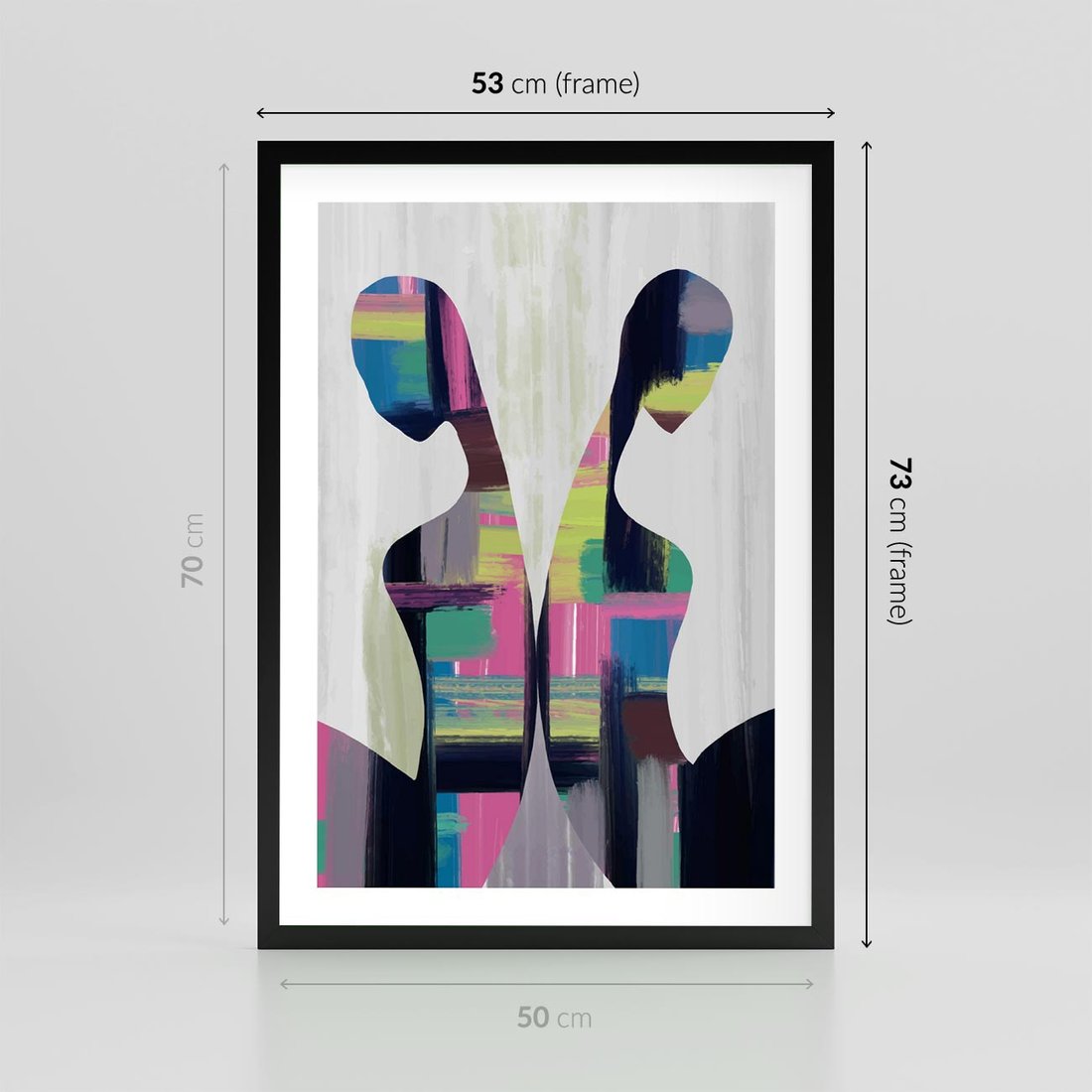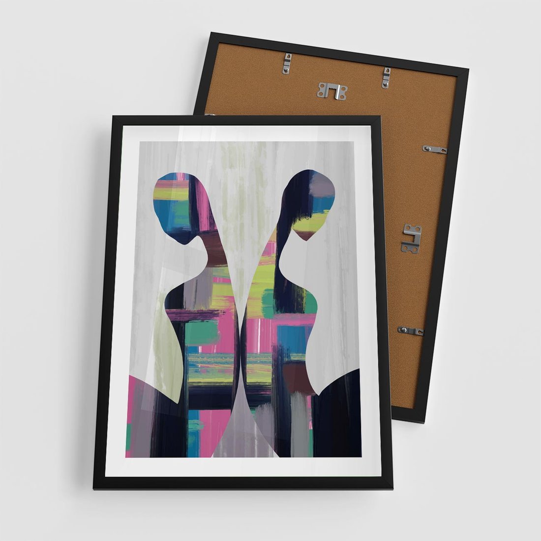 Nasz abstrakcyjny plakat to połączenie nowoczesnej sztuki z sylwetkami ludzi w dynamicznym tańcu kolorów. Intensywne barwy nadają głębi kompozycji, oddając emocje i energię. To idealny dodatek dla miłośników sztuki poszukujących unikalnej dekoracji, która wzbudzi zainteresowanie i ożywi przestrzeń.