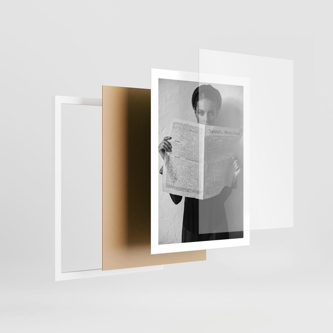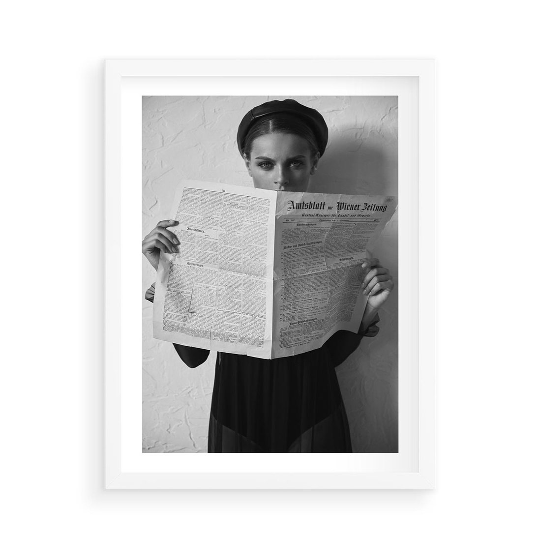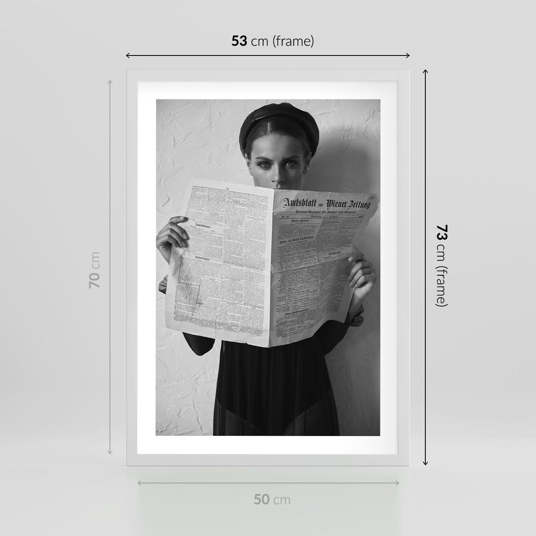 Plakat w ramie 50x70 - Nowe Wiadomości - retro zdjęcie, czarno białe - rama biała