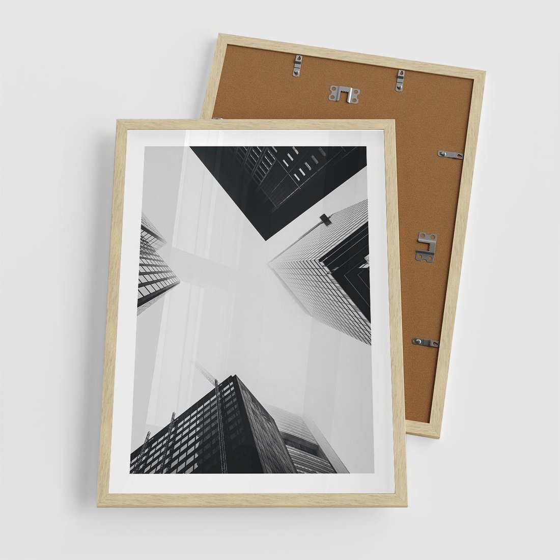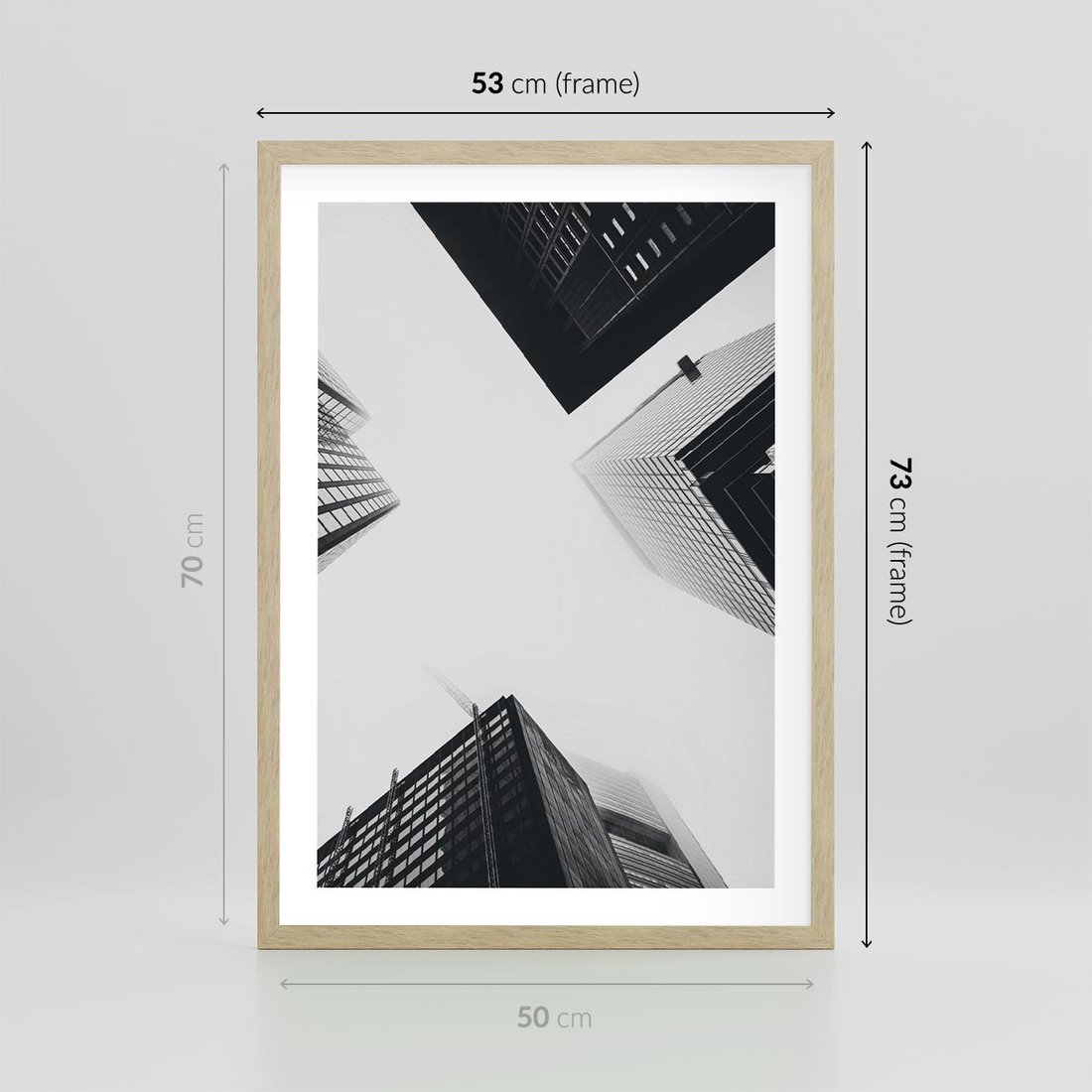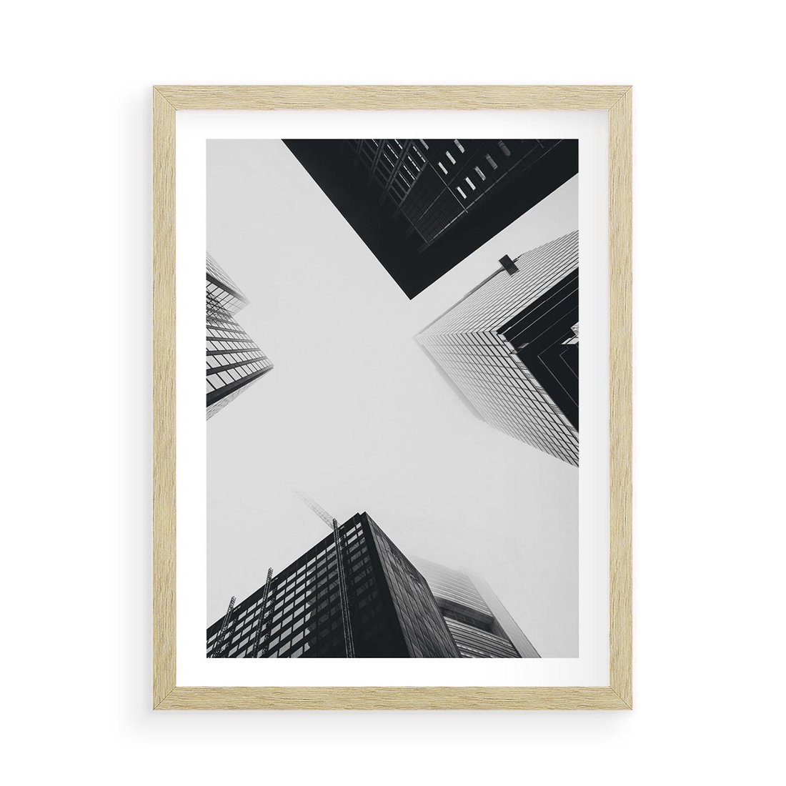 Plakat w ramie 50x70 - Nowoczesna Dynamika - perspektywa, wieżowce - rama drewno
