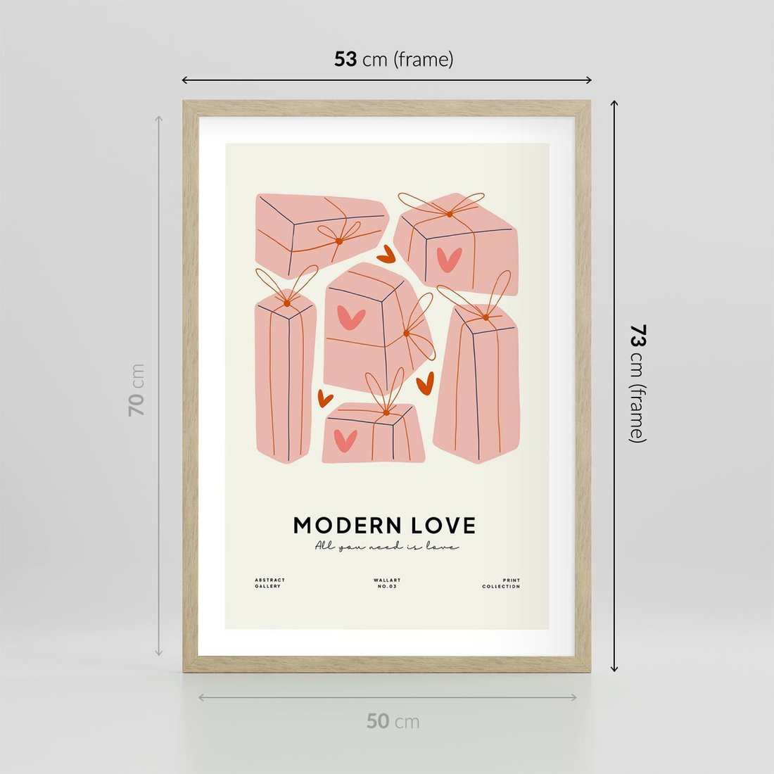 Plakat w ramie 50x70 - Nowoczesna Miłość - nowoczesna grafika, pastelowe kolory - rama drewno