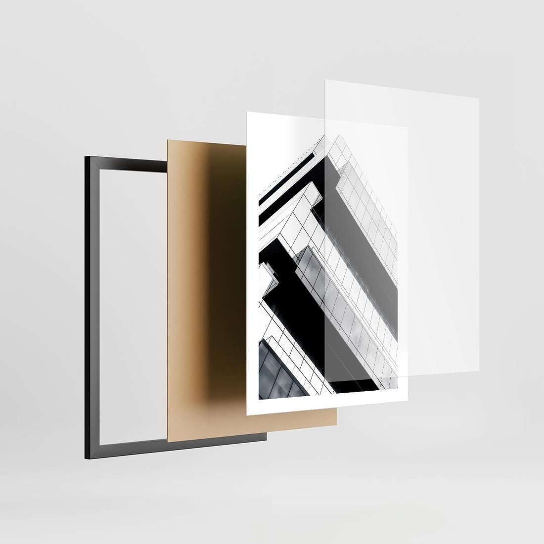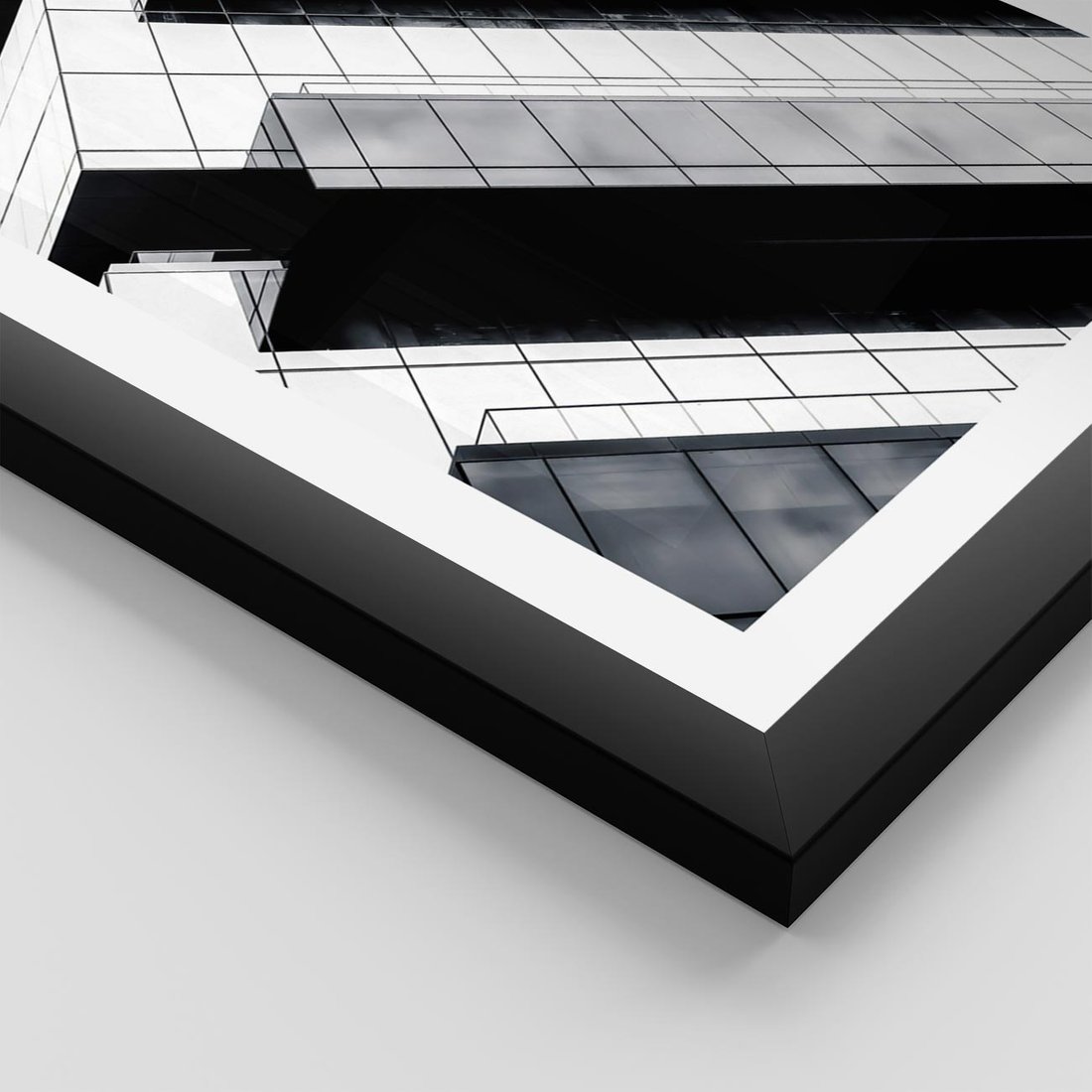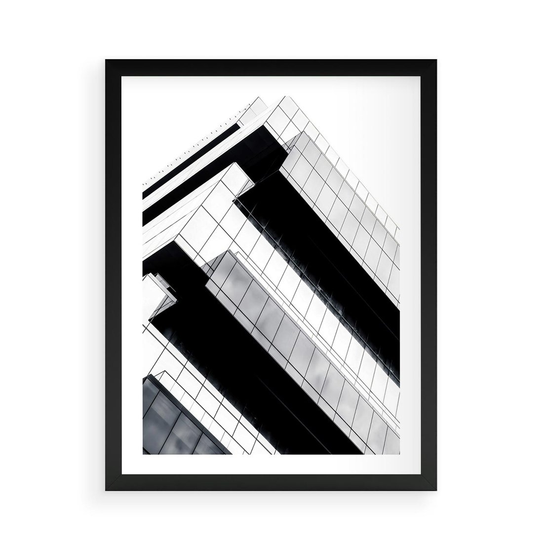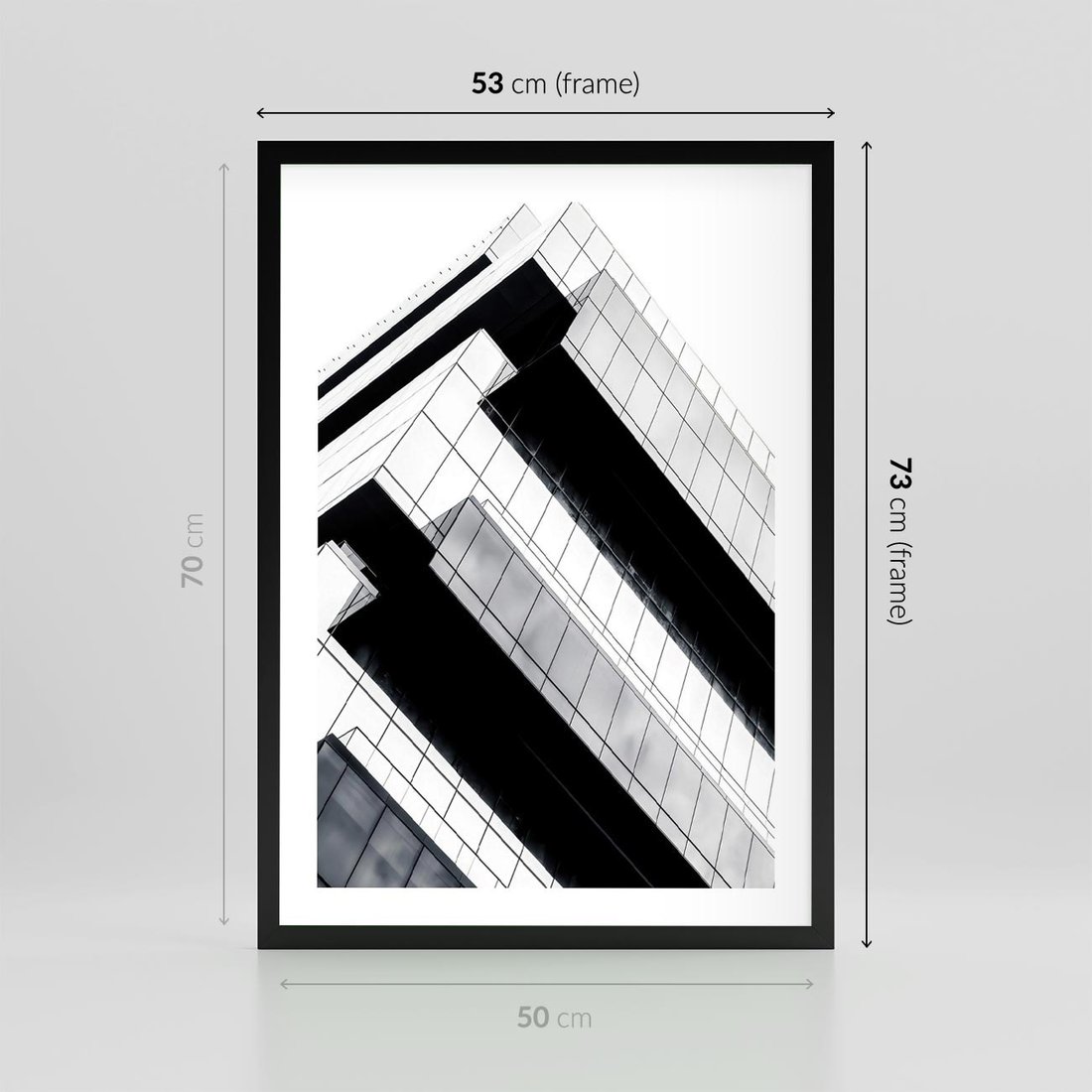 Plakat w ramie 50x70 - Nowoczesna Surowość: Wieżowiec na Czarno-Białej Grafice - architektura, wieżowiec - rama czarna