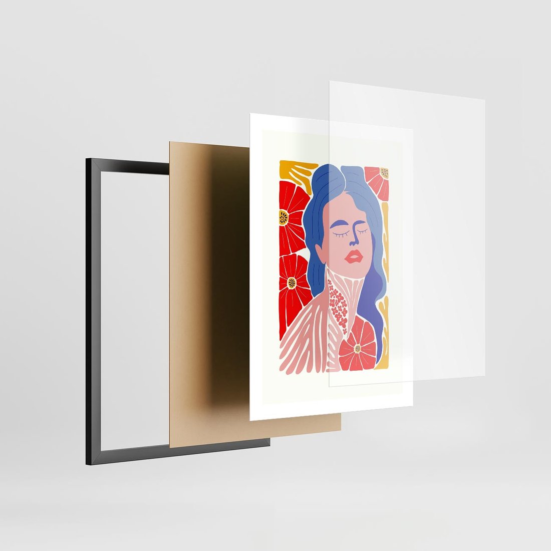 Plakat w ramie 50x70 - Nowoczesna Twarz - nowoczesna grafika, kolorowa twarz kobiety - rama czarna