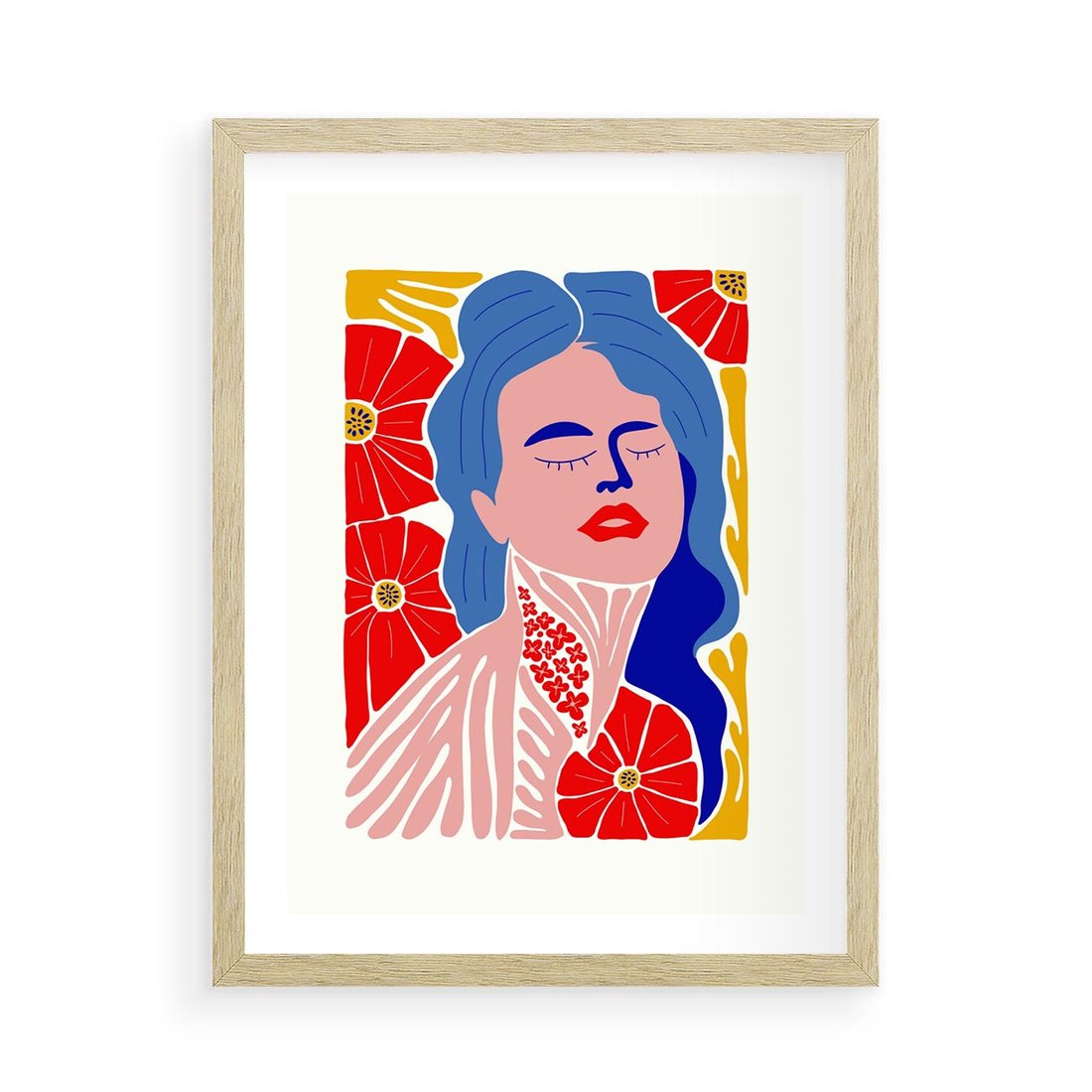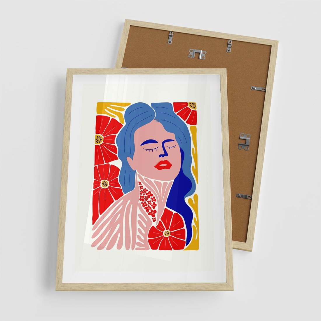 Plakat w ramie 50x70 - Nowoczesna Twarz - nowoczesna grafika, kolorowa twarz kobiety - rama drewno