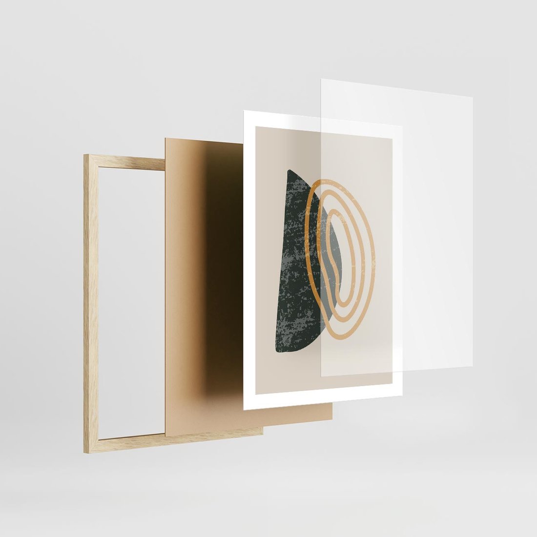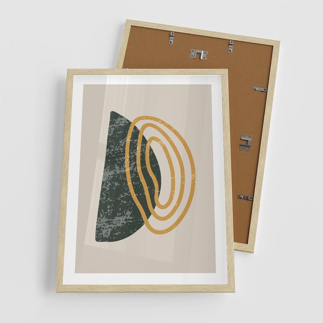 Nasz nowoczesny plakat to abstrakcyjne kształty w stonowanych brązowych odcieniach. To połączenie minimalizmu i nowoczesnej sztuki tworzy spokojną, lecz wyrazistą kompozycję, idealną do wnętrz poszukujących harmonii i subtelnego wyrażenia artystycznego.