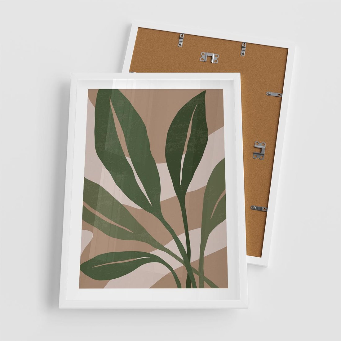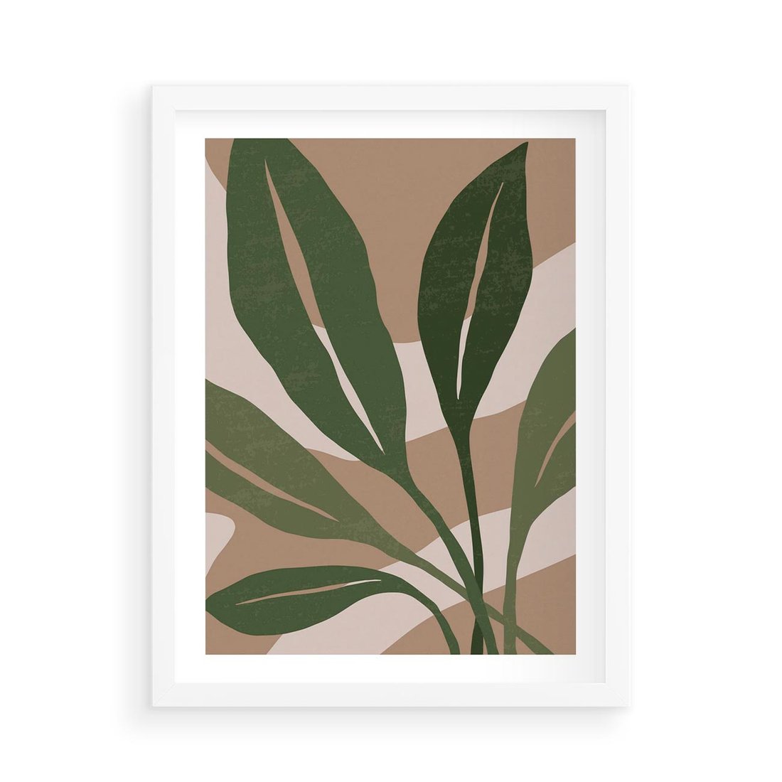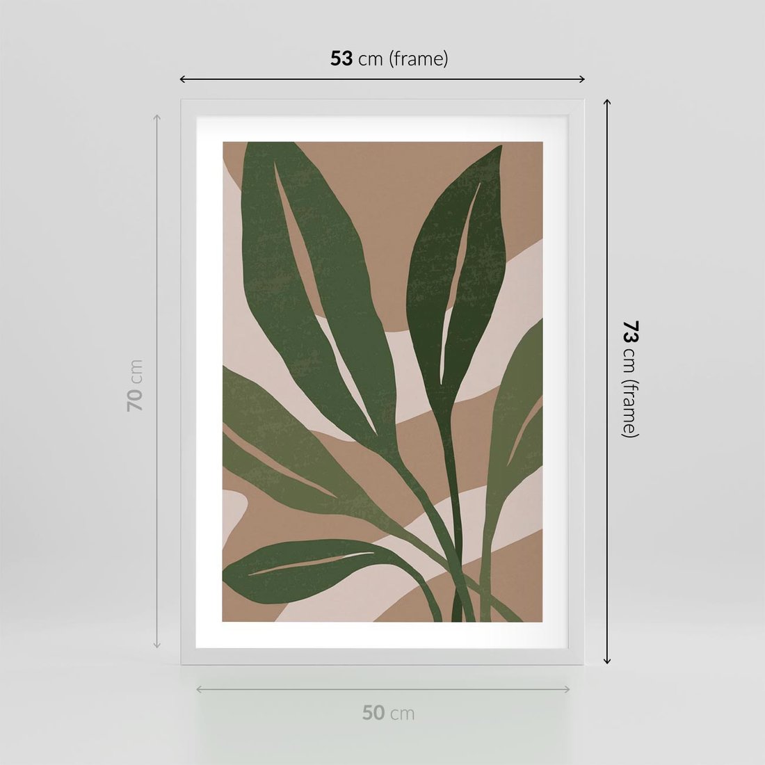 Plakat w ramie 50x70 - Nowoczesność Natury: Plakat z Zielonymi Liśćmi - nowoczesny plakat, beż - rama biała