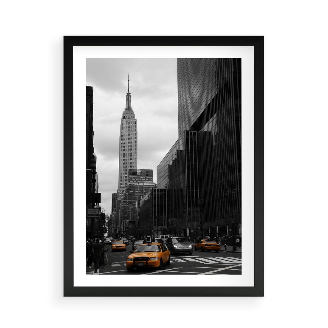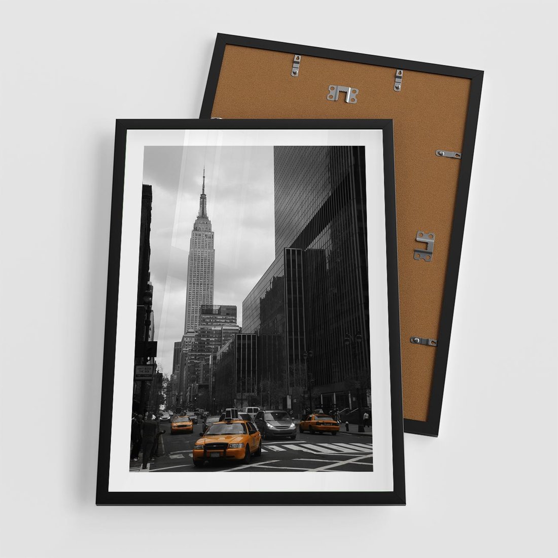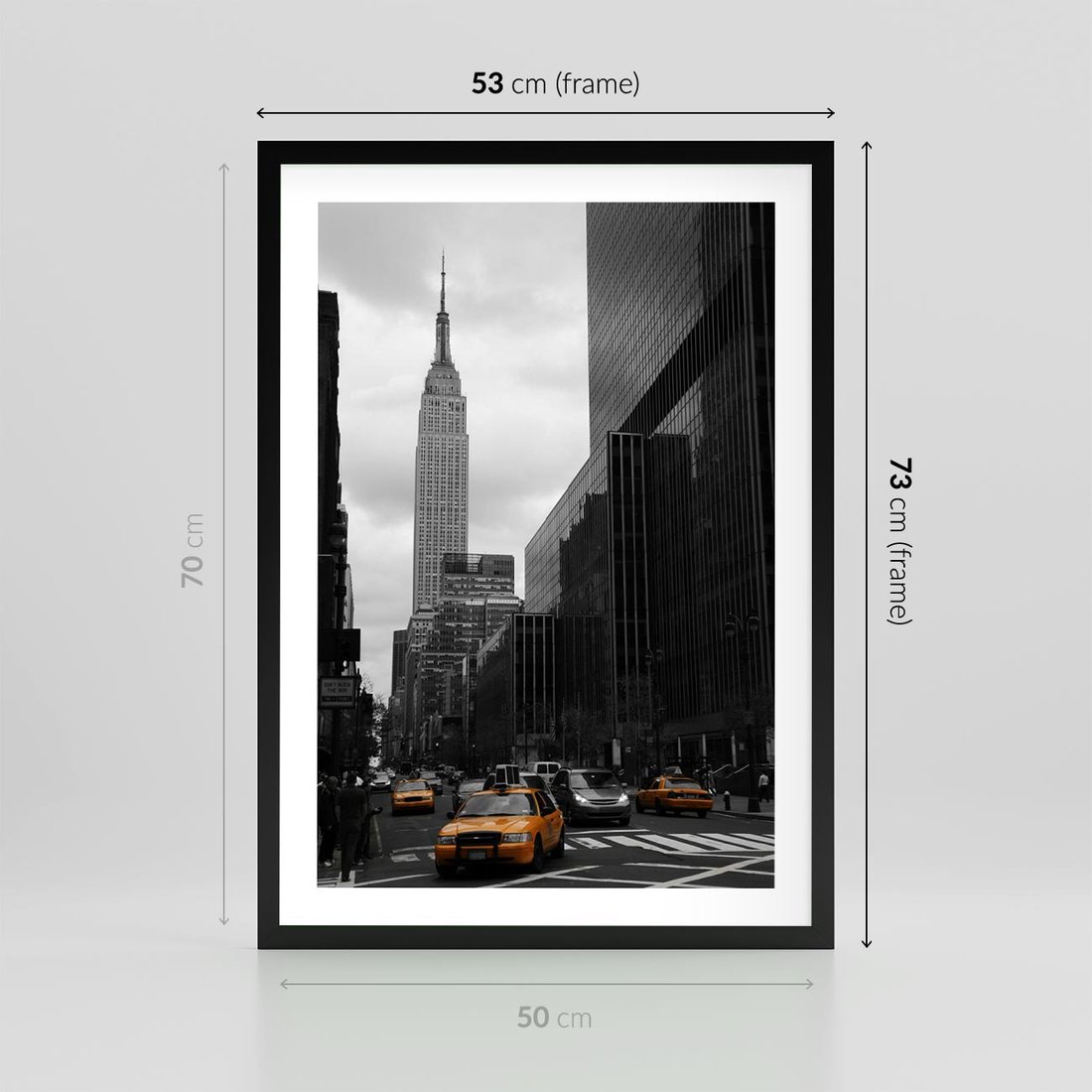 Plakat w ramie 50x70 - Nowy York, taksówka w ruchu - Nowy York, taksówka - rama czarna