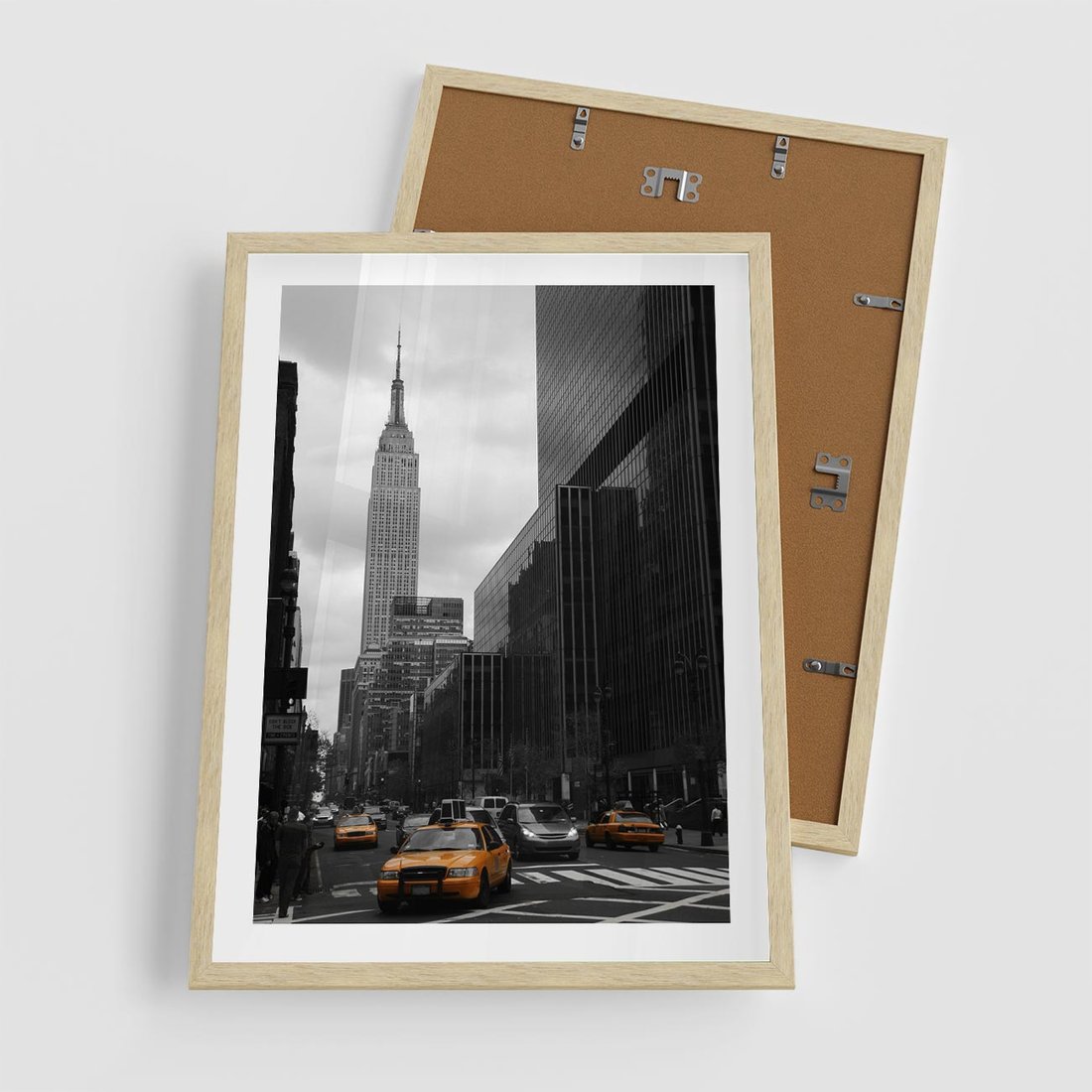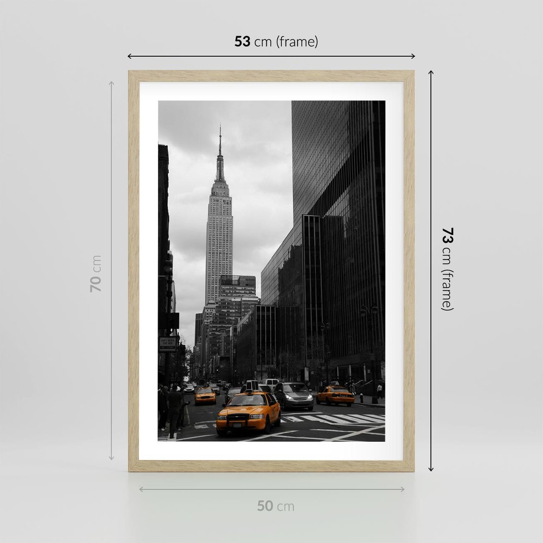 Plakat w ramie 50x70 - Nowy York, taksówka w ruchu - Nowy York, taksówka - rama drewno