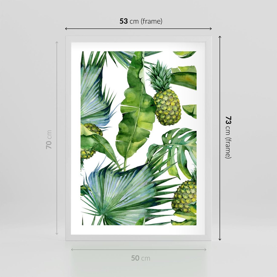 Plakat w ramie 50x70 - Oaza Natury - liście, tropikalne - rama biała