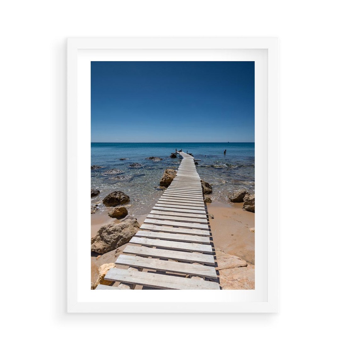Przenieś się na spokojną plażę nad morzem dzięki obrazowi na płótnie. Odczuj relaksujący szum fal i ciepły piasek pod stopami, gdy przenosisz się na pomost, który zapewni Ci chwilę wytchnienia i ukojenia.