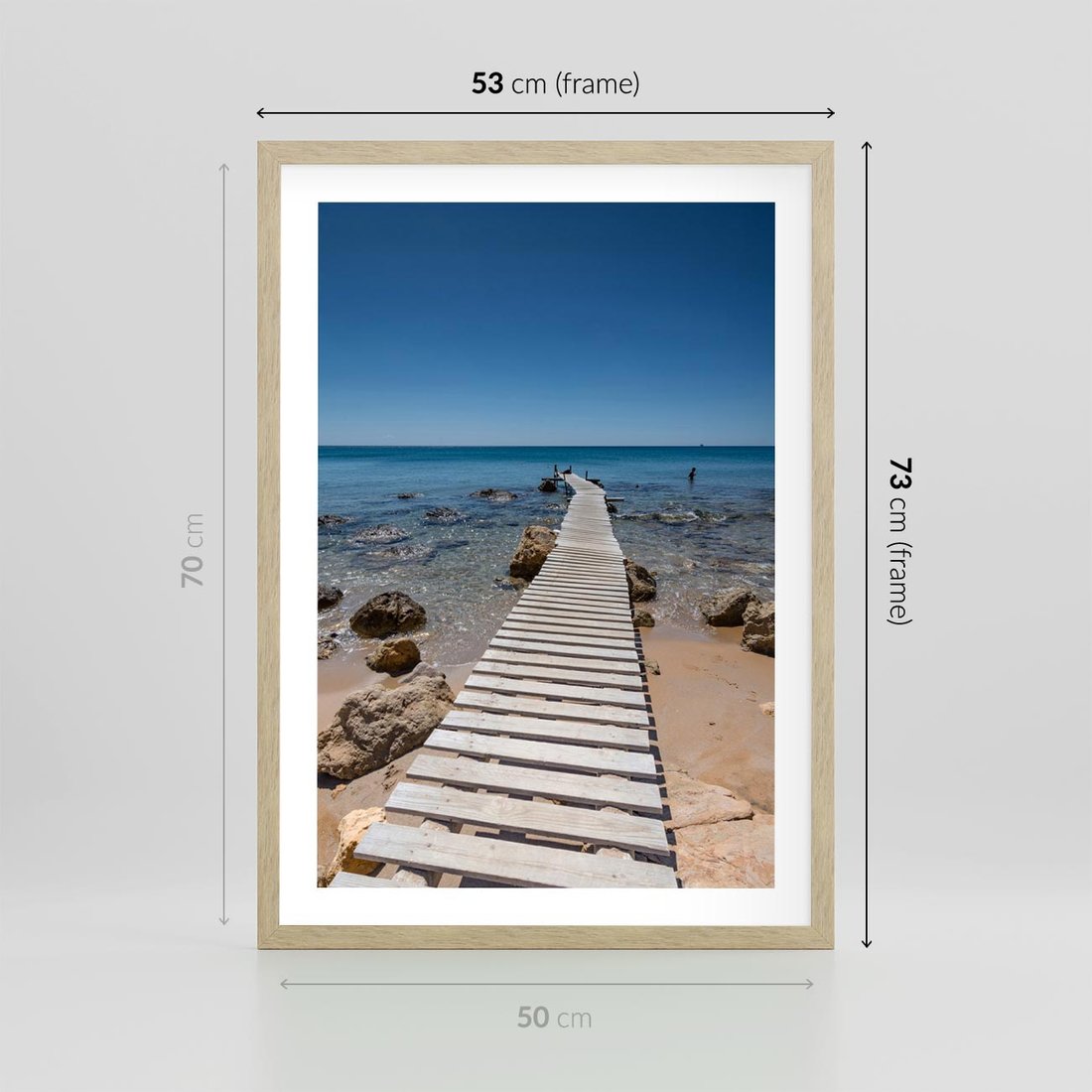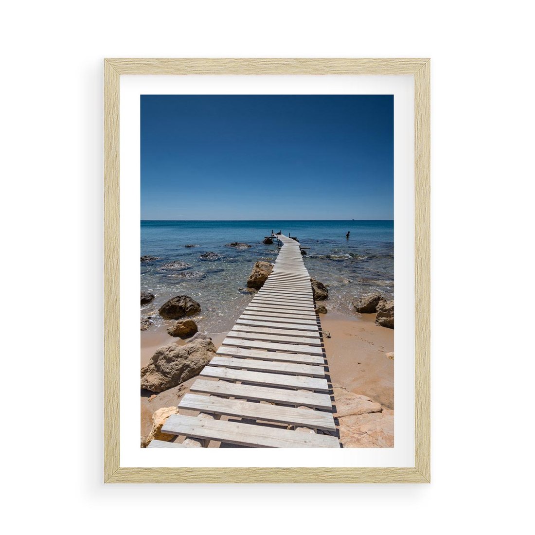 Przenieś się na spokojną plażę nad morzem dzięki obrazowi na płótnie. Odczuj relaksujący szum fal i ciepły piasek pod stopami, gdy przenosisz się na pomost, który zapewni Ci chwilę wytchnienia i ukojenia.