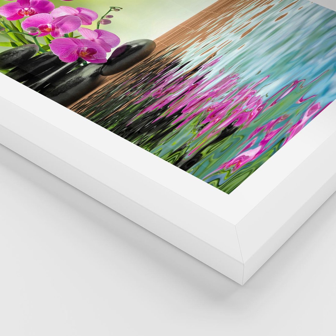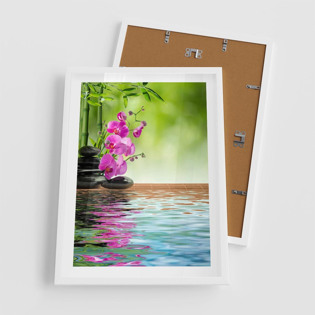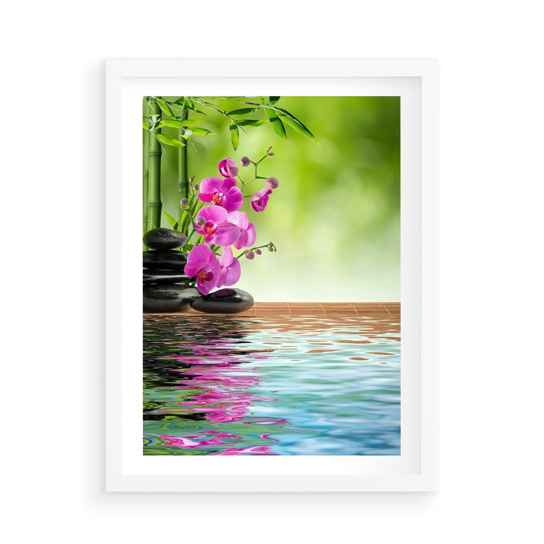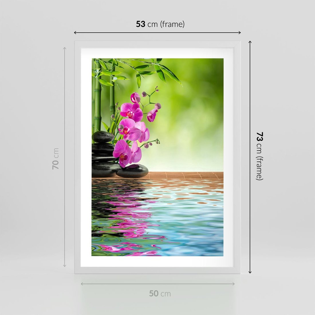 Plakat w ramie 50x70 - Oaza Storczyka i Wody - spa, storczyk - rama biała