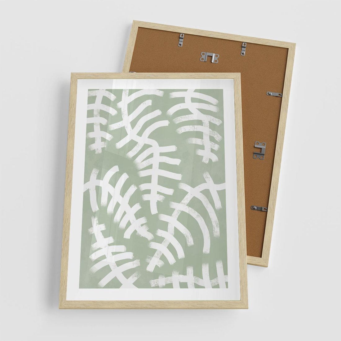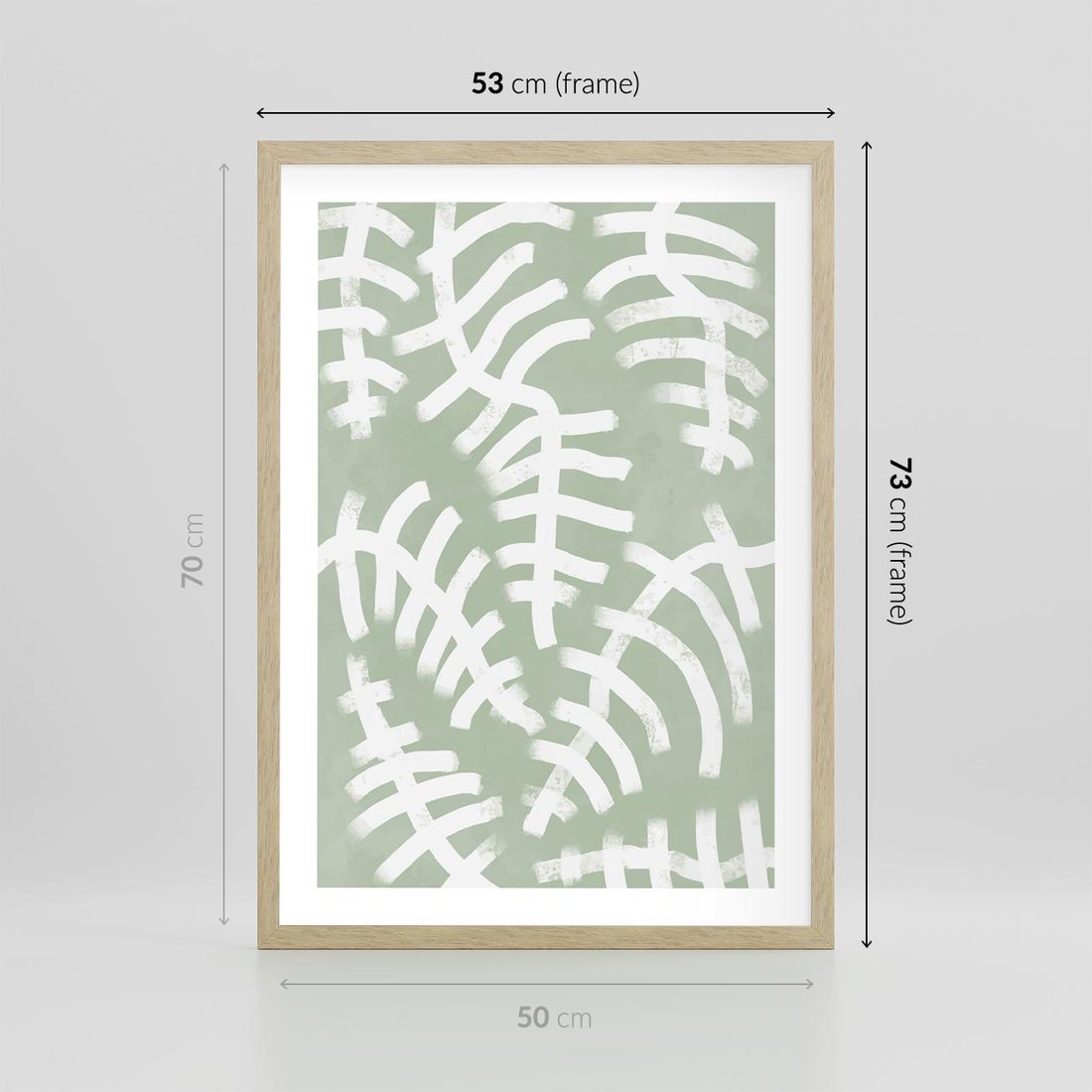 Plakat w ramie 50x70 - Oaza Zieleni - zielona abstrakcja, zgaszona zieleń - rama drewno