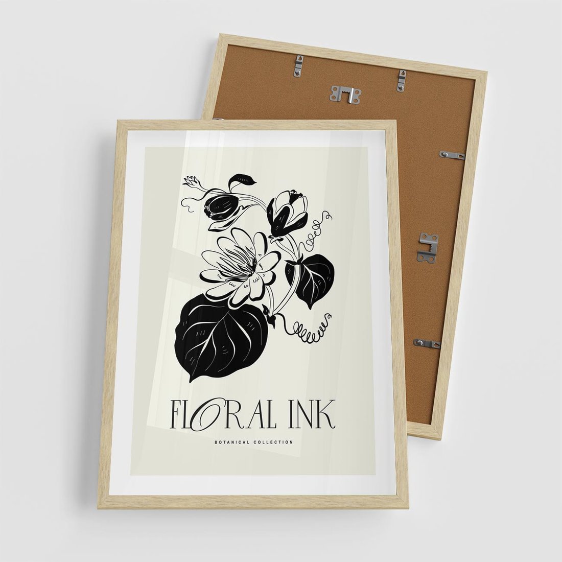 Zestawienie kwiatów i typografii w minimalistycznym stylu. Monochromatyczne kolory i czarny kontur tworzą spokojną równowagę. Ten obraz to idealny wybór dla miłośników minimalizmu, którzy pragną wnosić delikatne piękno natury do swojego wnętrza, utrzymując estetykę czystą i harmonijną.