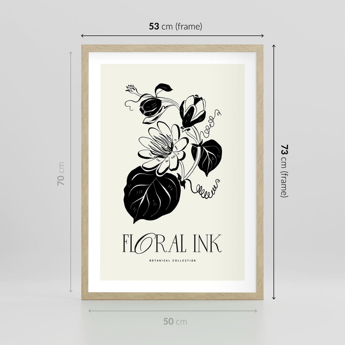 Plakat w ramie 50x70 - Odbicie kwiatowych chwil - kwiaty, typografia - rama drewno