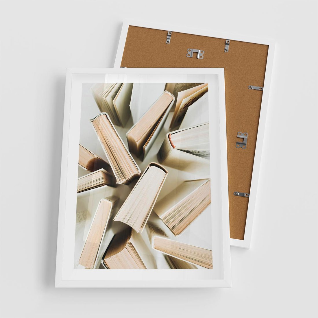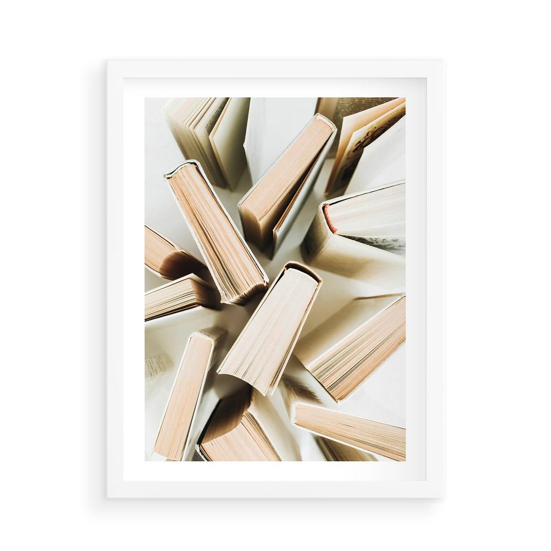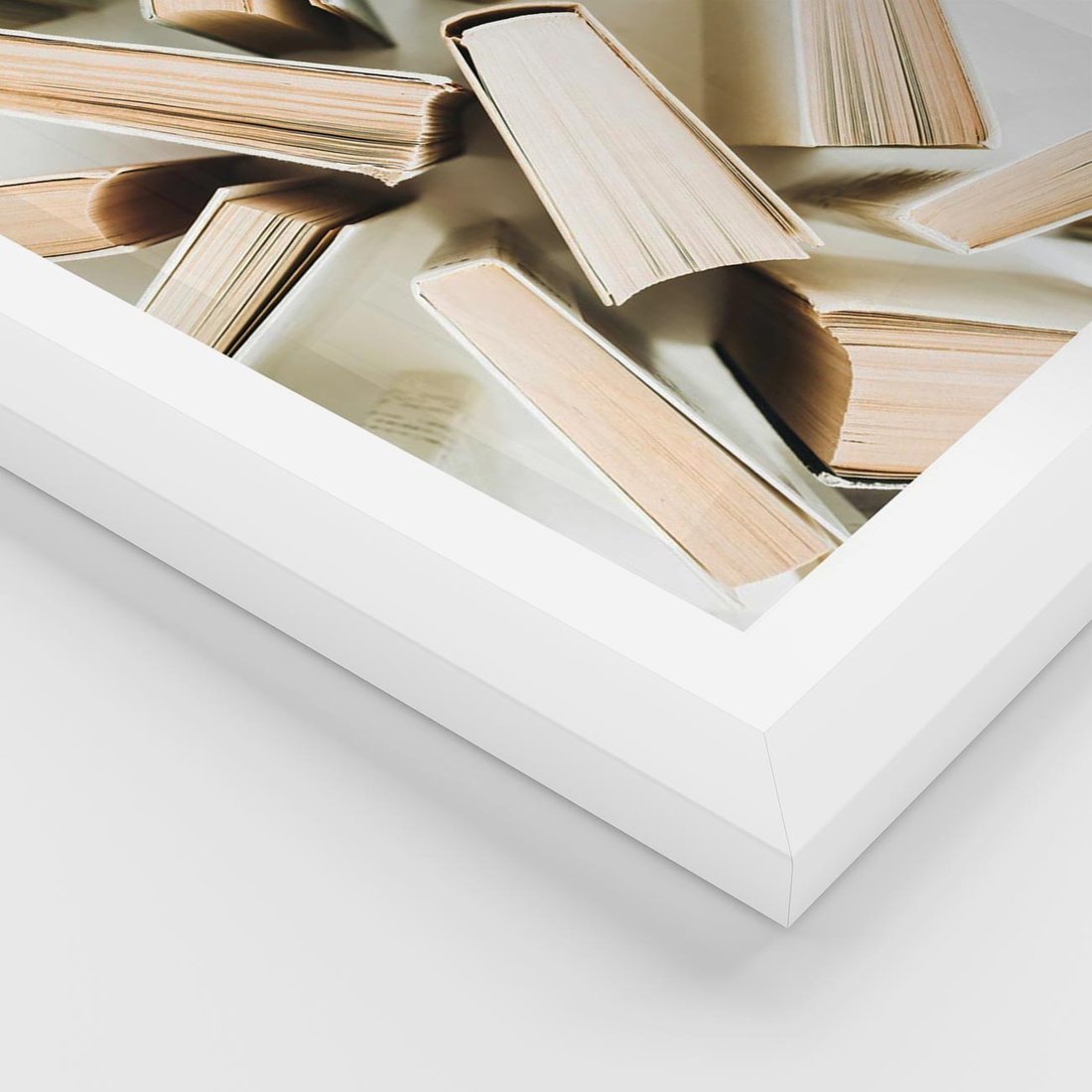 Plakat w ramie 50x70 - Odcienie Wiedzy - książki, ujęcie z góry - rama biała