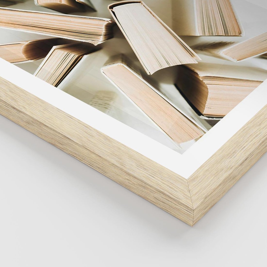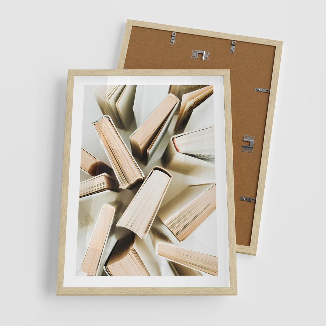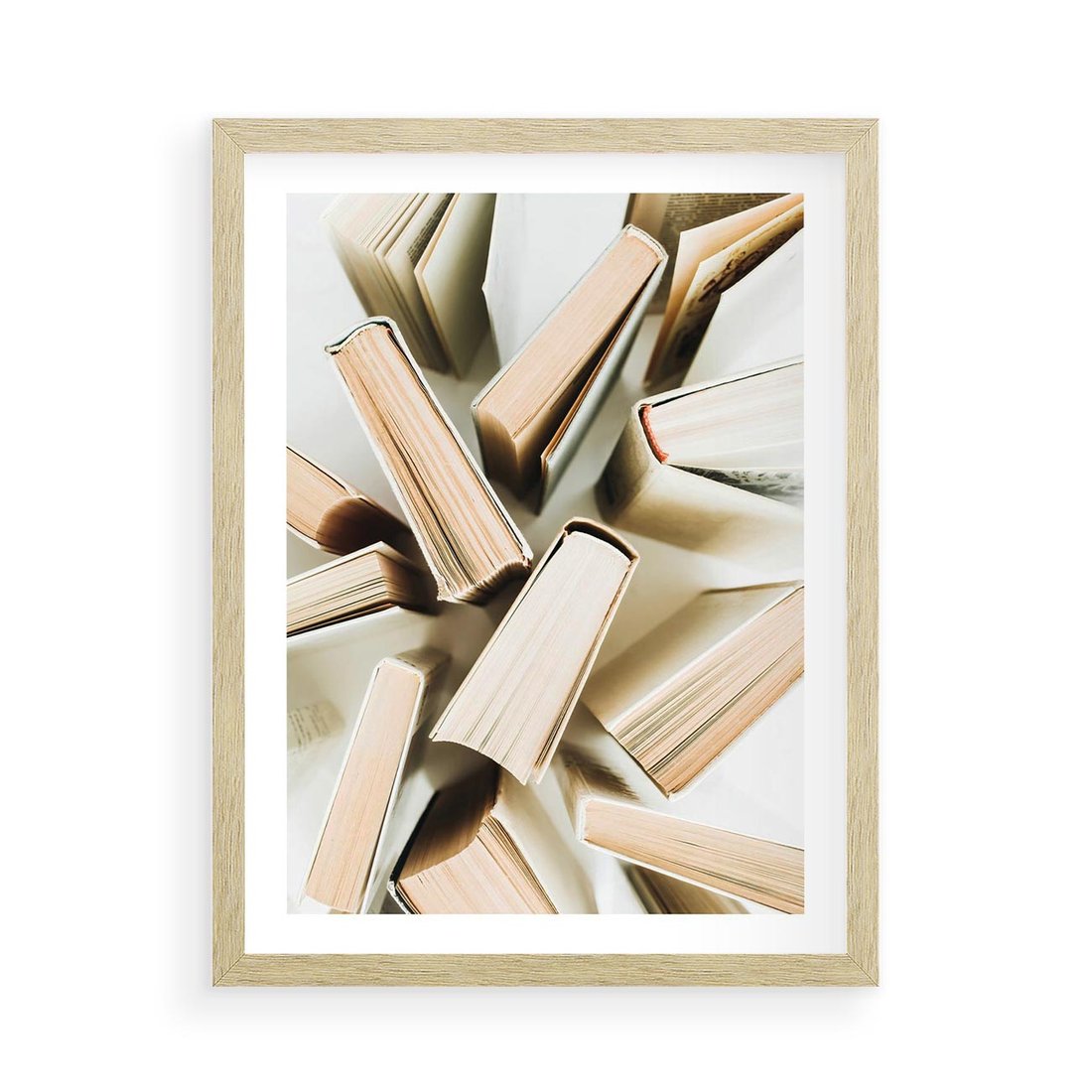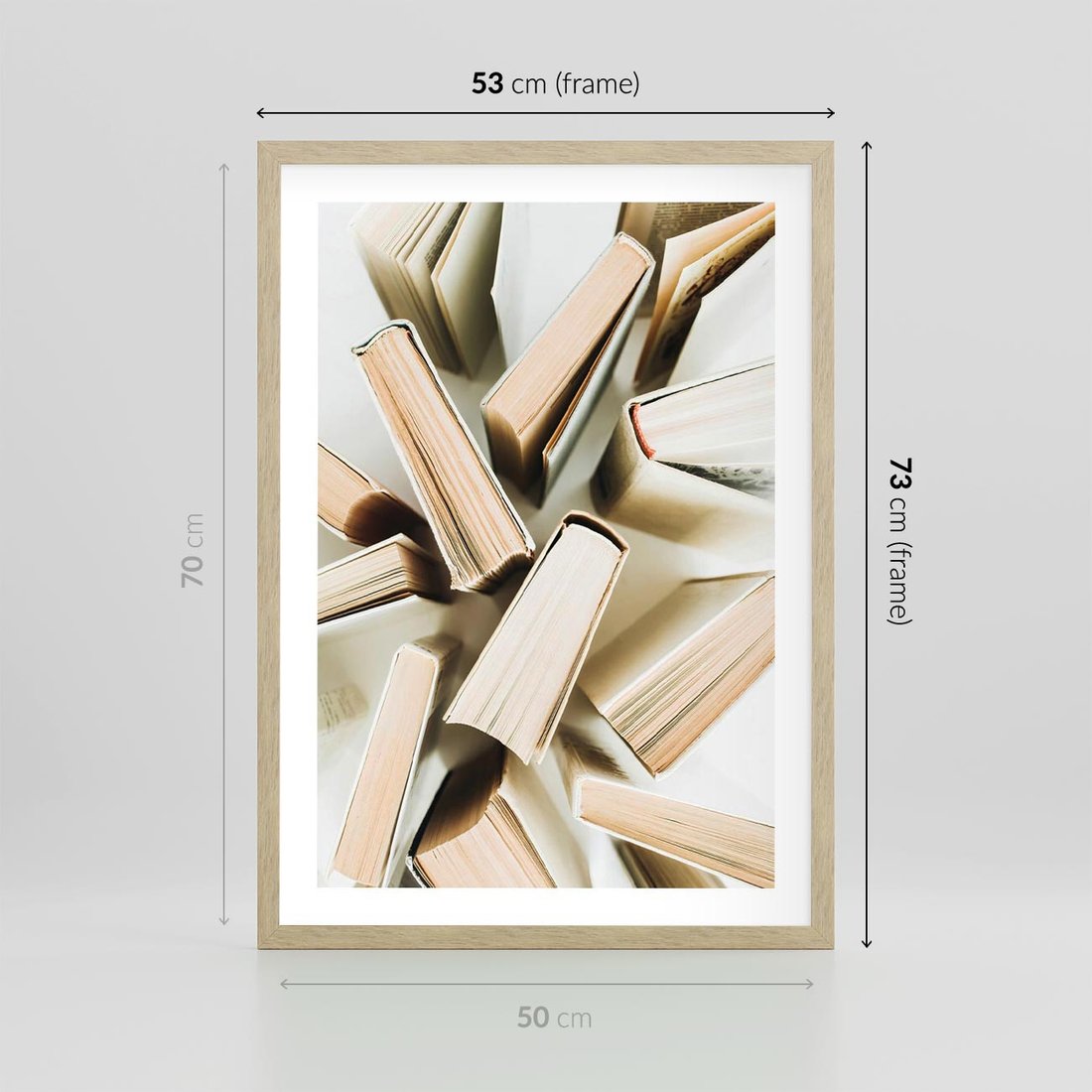 Plakat w ramie 50x70 - Odcienie Wiedzy - książki, ujęcie z góry - rama drewno