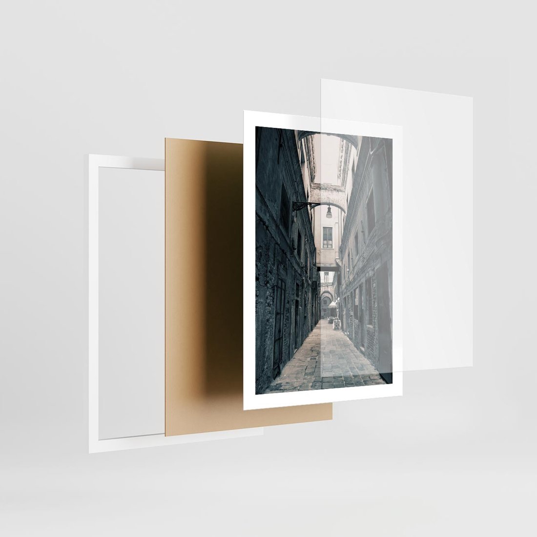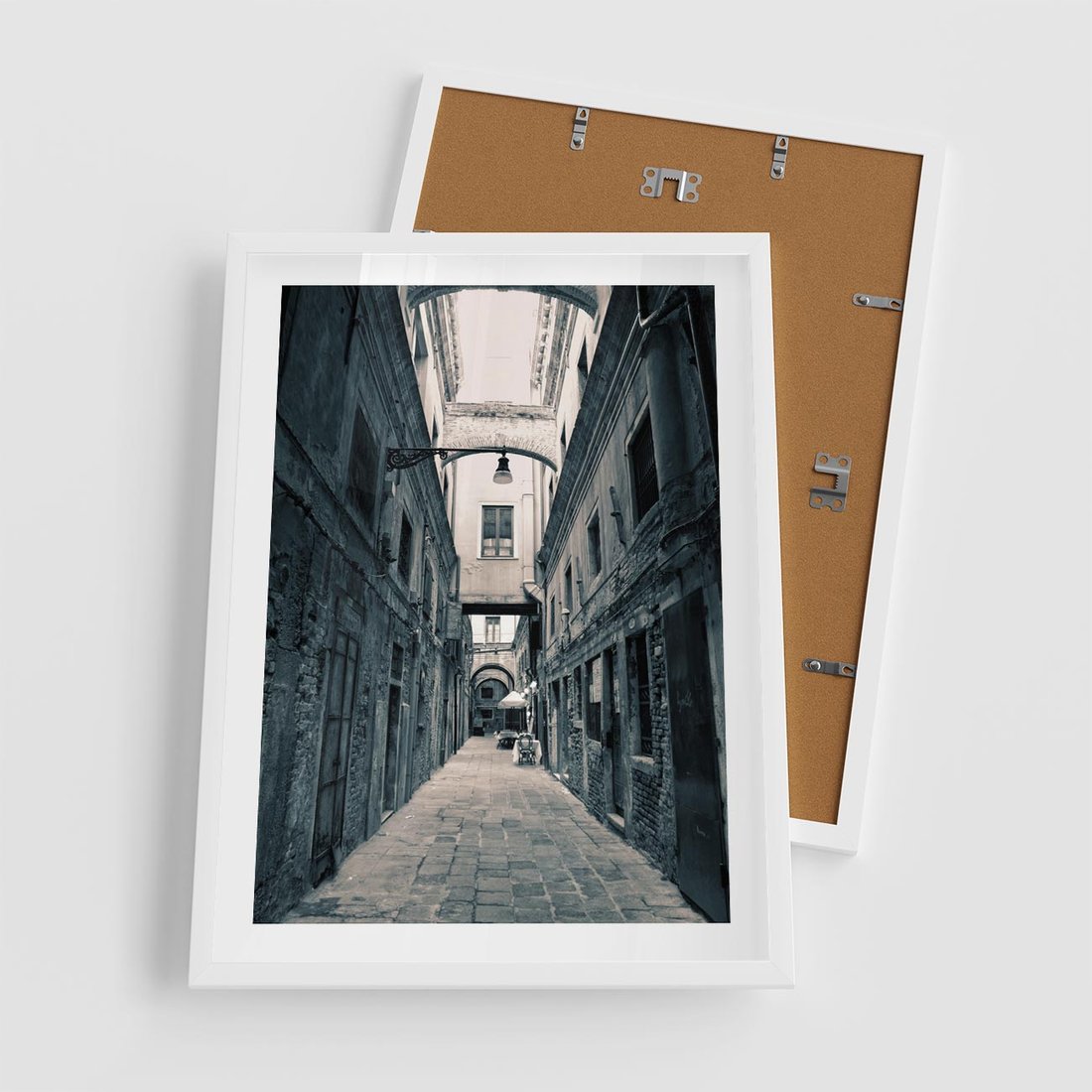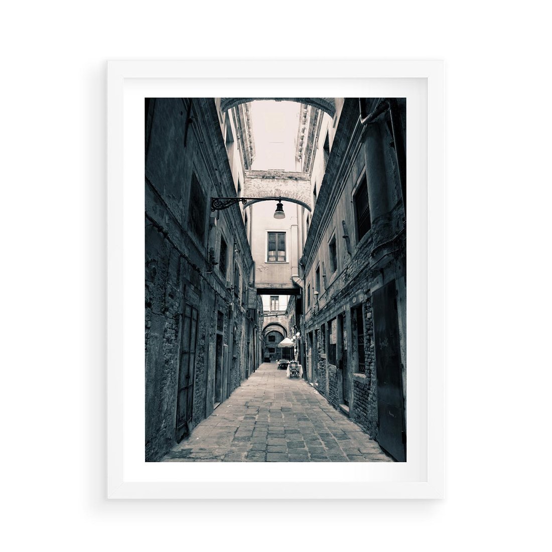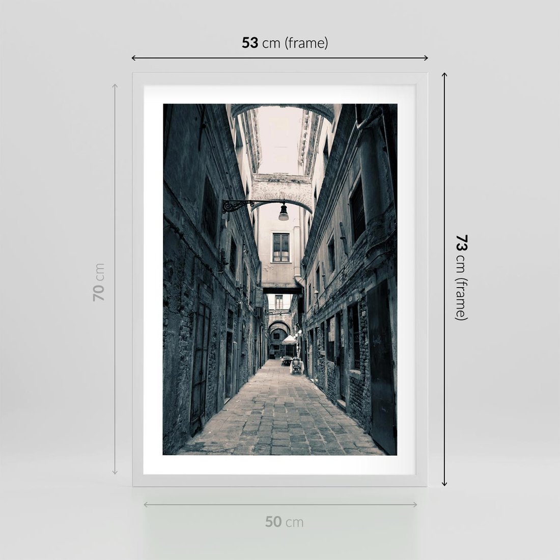 Plakat w ramie 50x70 - Odkryj tajemnice miasta - uliczka, perspektywa - rama biała