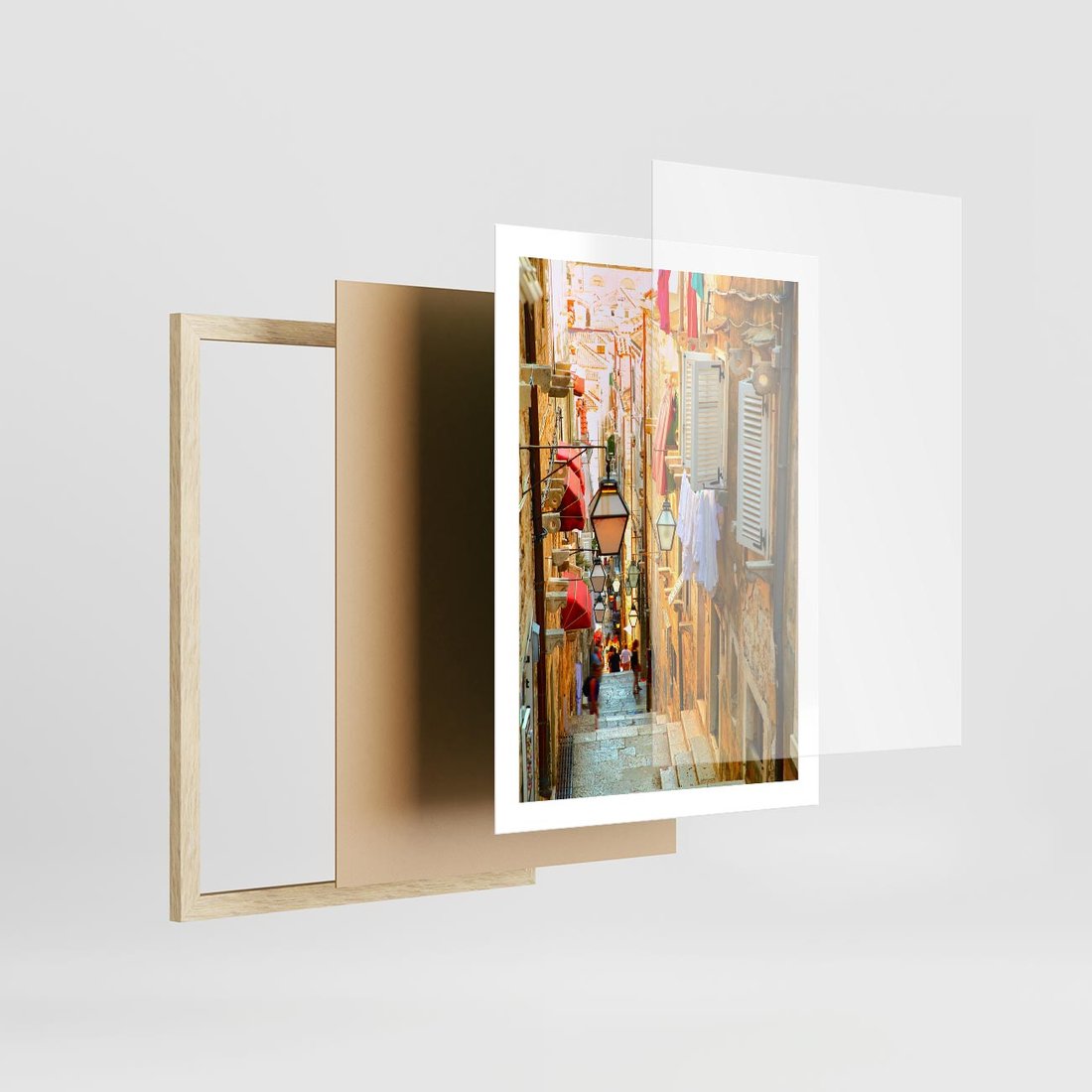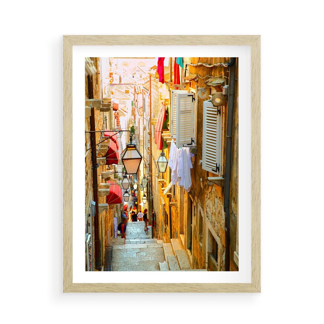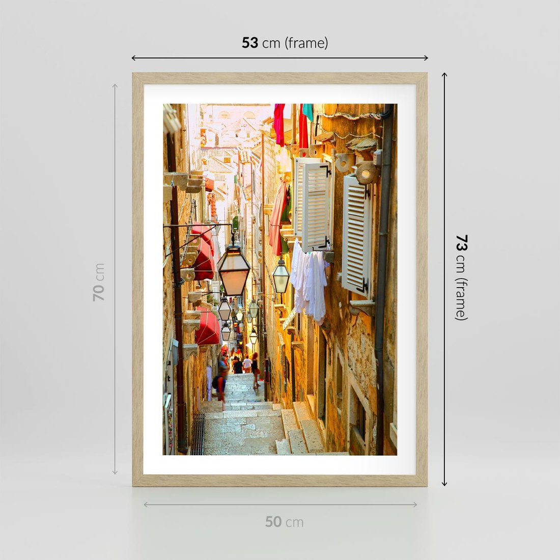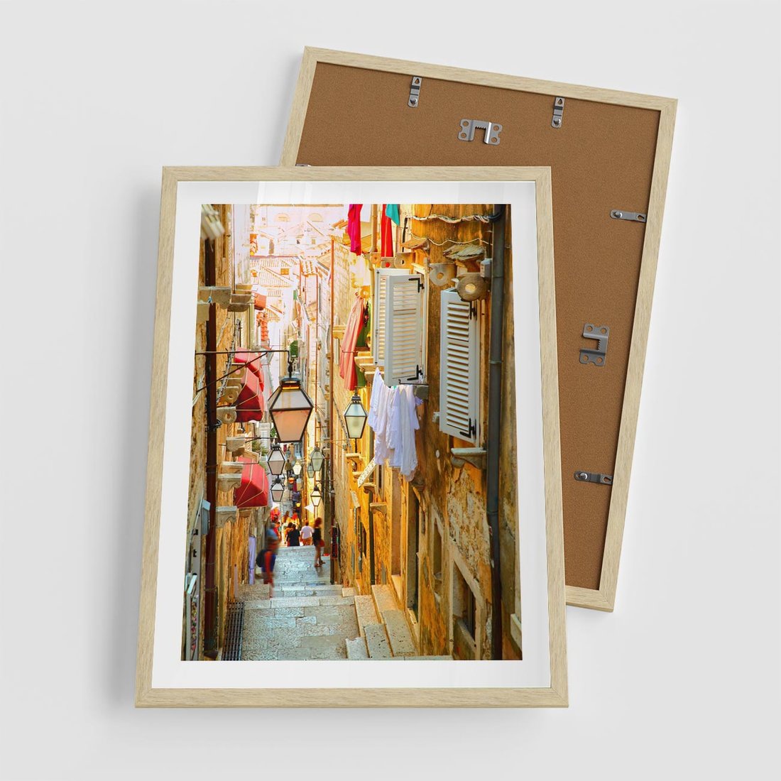 Plakat w ramie 50x70 - Odkryj tajemnice miasta - uliczka, perspektywa - rama drewno
