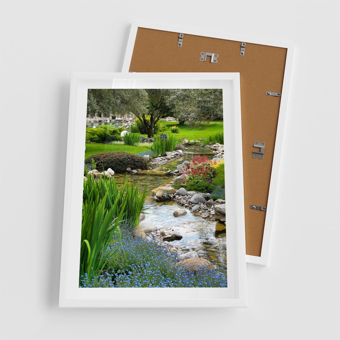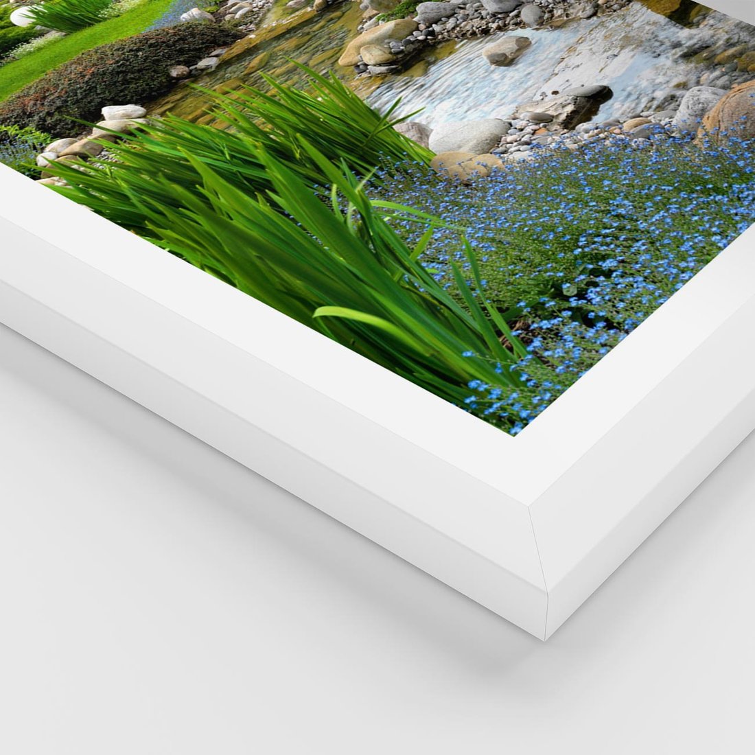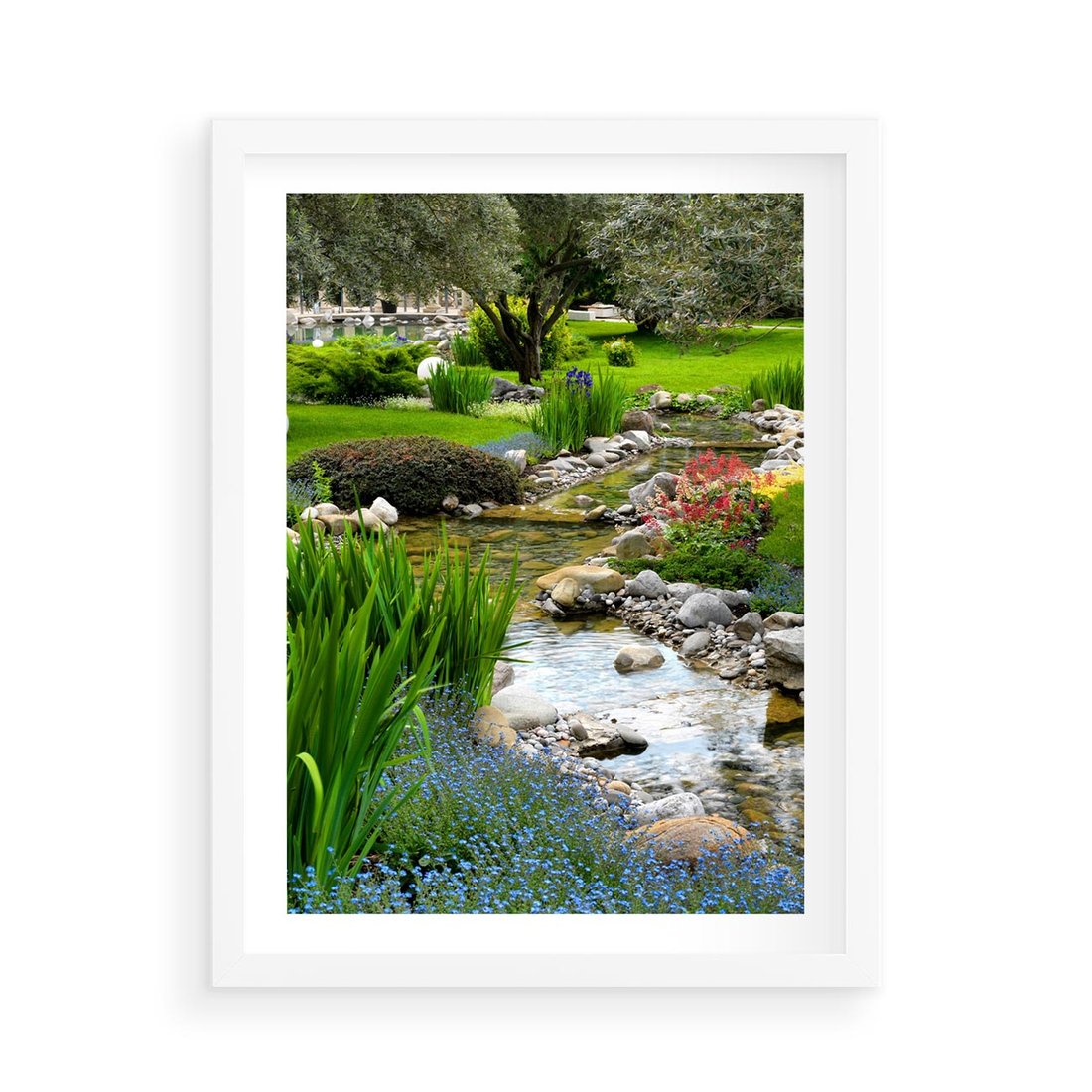 Plakat w ramie 50x70 - Ogródowy Strumyk - strumyk, ogród - rama biała