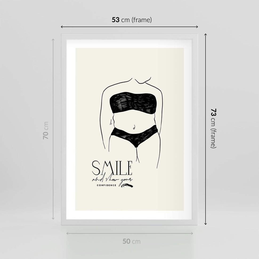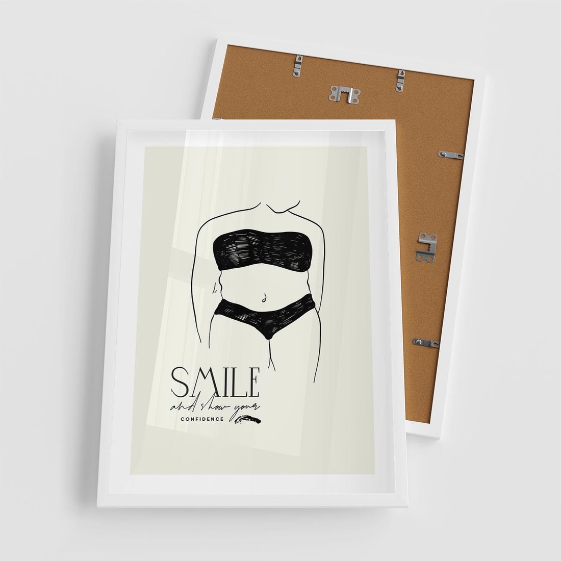 Ten plakat ukazuje silną kobietę w bieliźnie, oddając moc jej kobiecości. Wyraziste rysunki wsparte inspirującą typografią podkreślają wyjątkowość i determinację, przypominając o potędze kobiecego ducha.