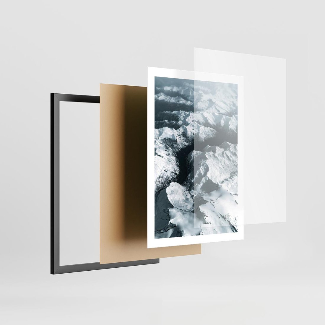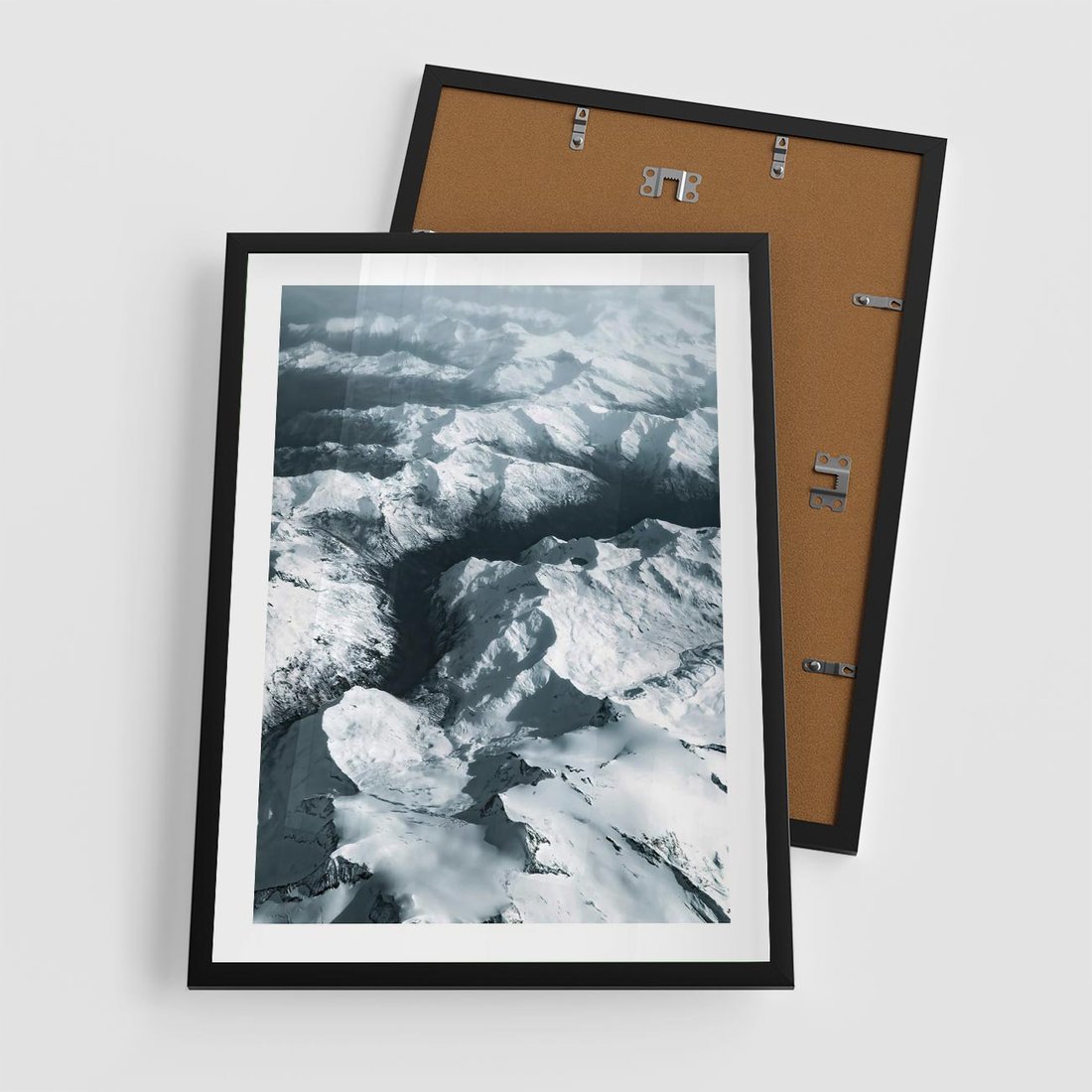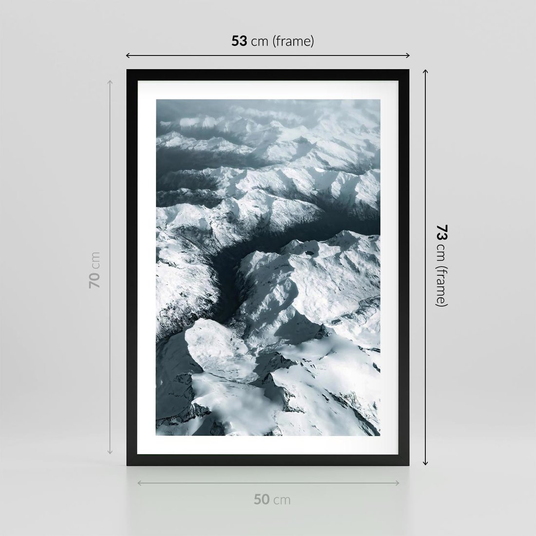 Plakat w ramie 50x70 - Ośnieżone Szczyty z Wysoka - ośnieżone szczyt górskie, zdjęcie z lotu ptaka - rama czarna