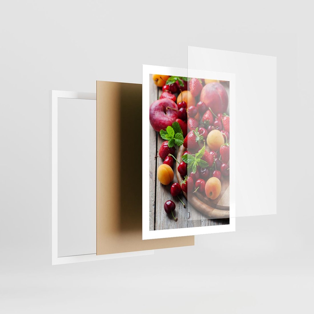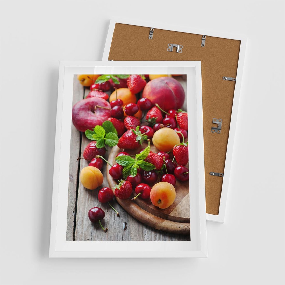Plakat w ramie 50x70 - Owoce w restauracji artystycznie - owoce, restauracja - rama biała