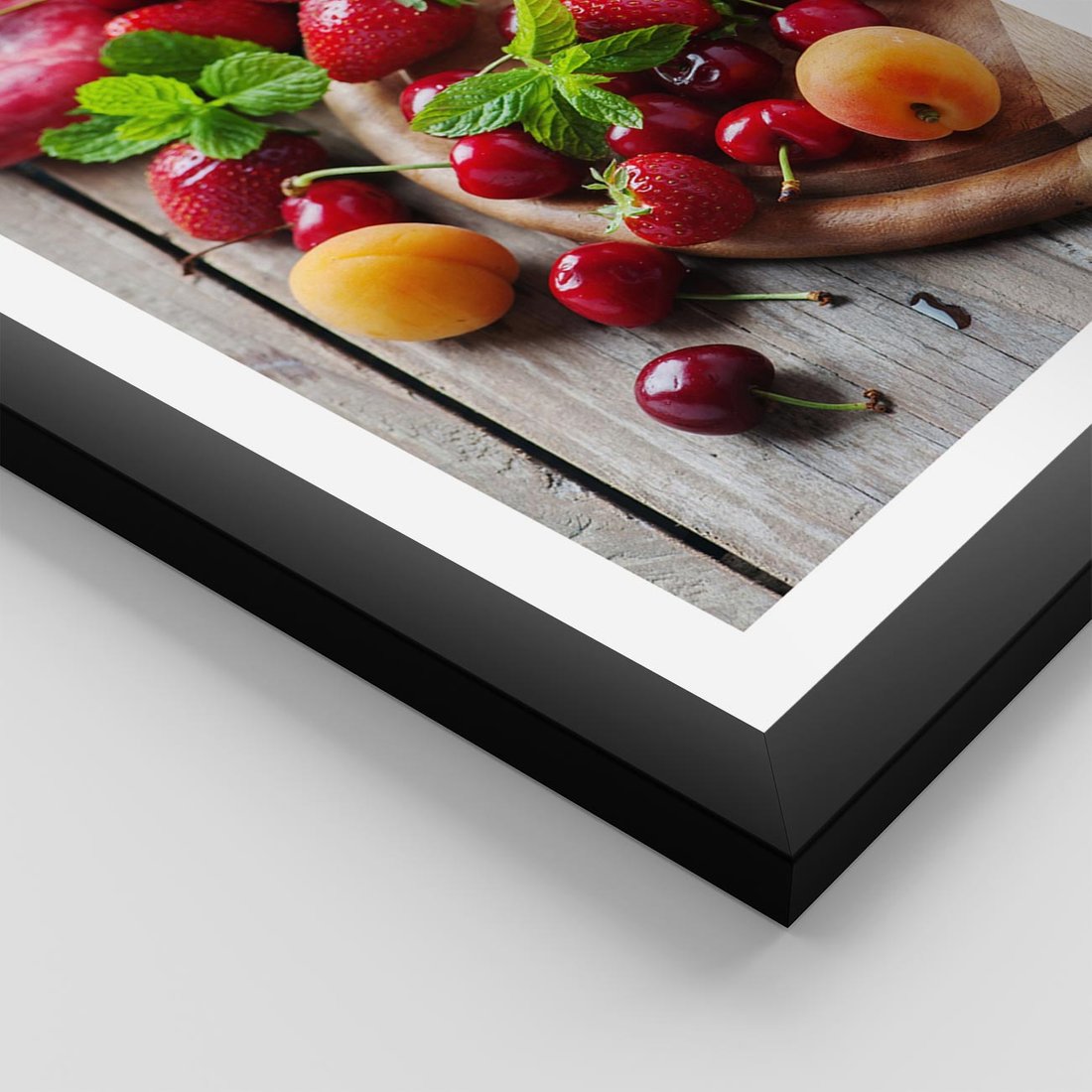 Plakat w ramie 50x70 - Owoce w restauracji artystycznie - owoce, restauracja - rama czarna