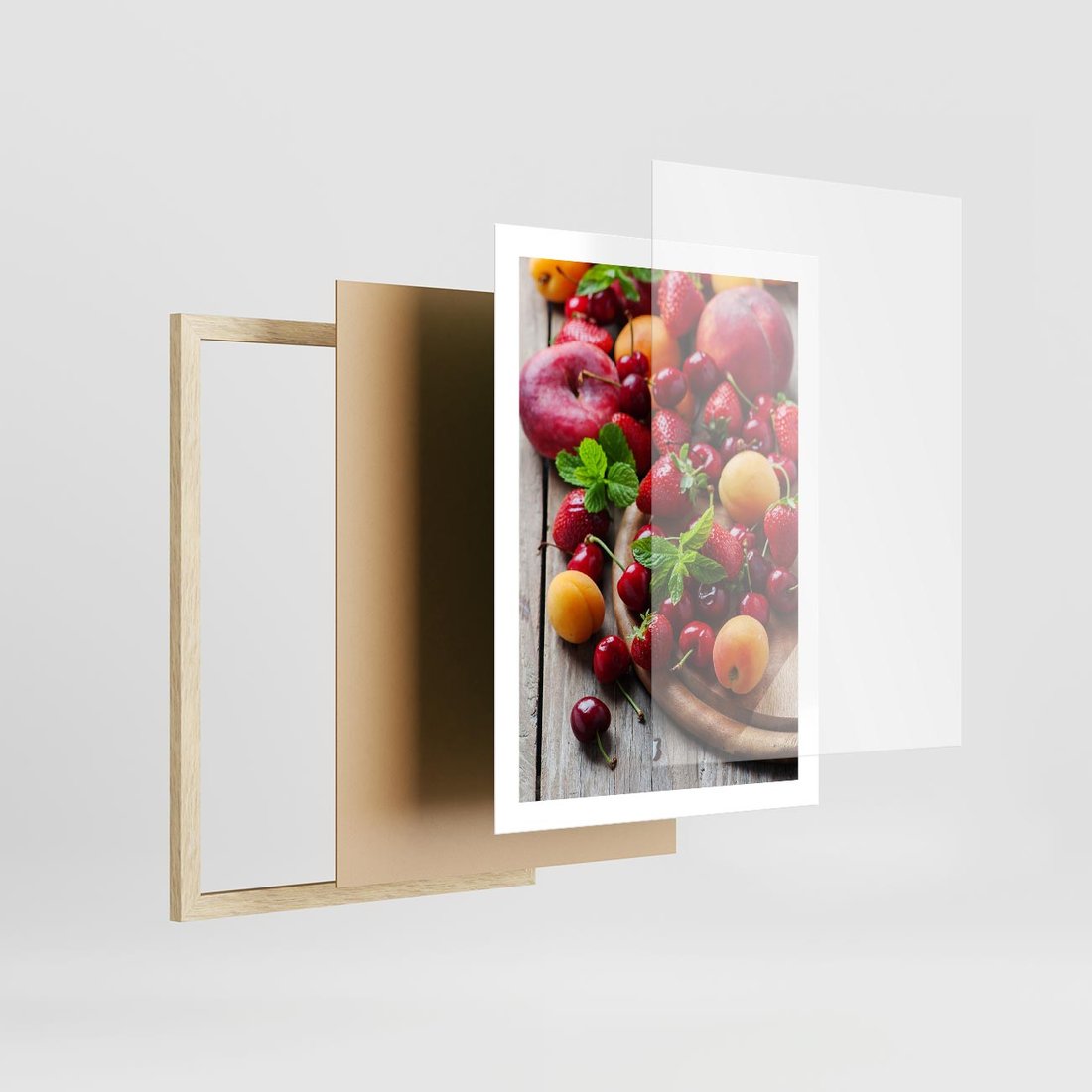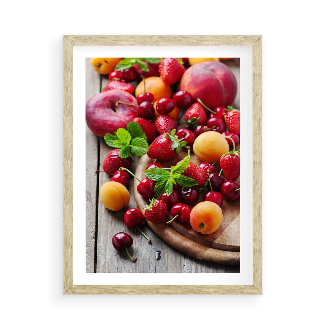 Plakat w ramie 50x70 - Owoce w restauracji artystycznie - owoce, restauracja - rama drewno