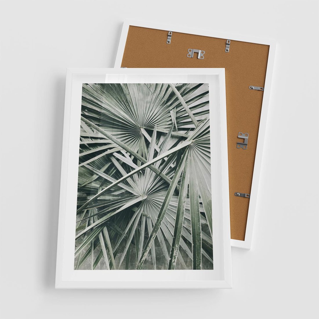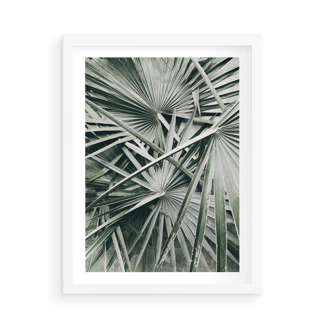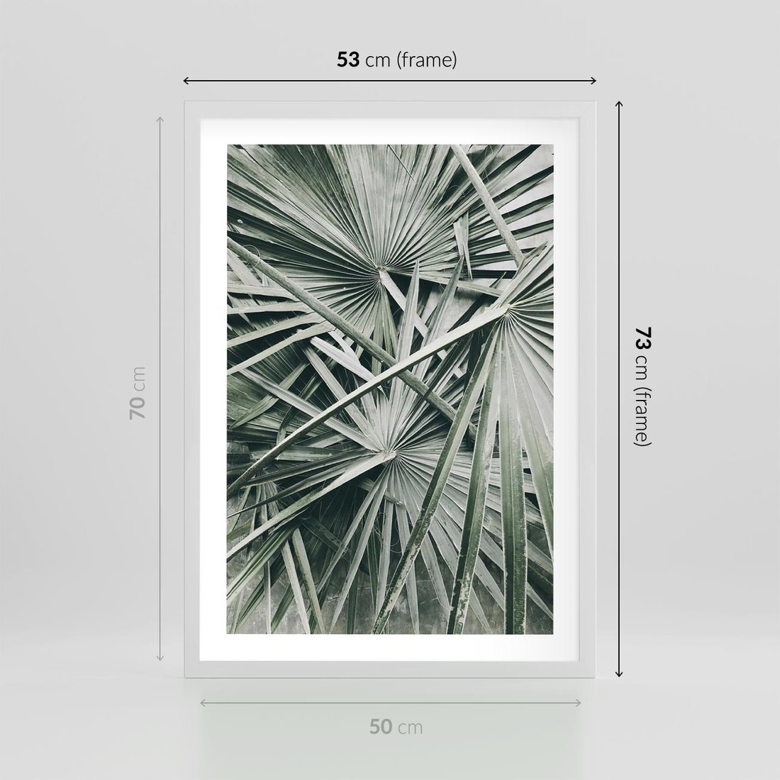 Plakat w ramie 50x70 - Palmy w Zgaszonej Zieleni - palmy, tropikalne liście - rama biała
