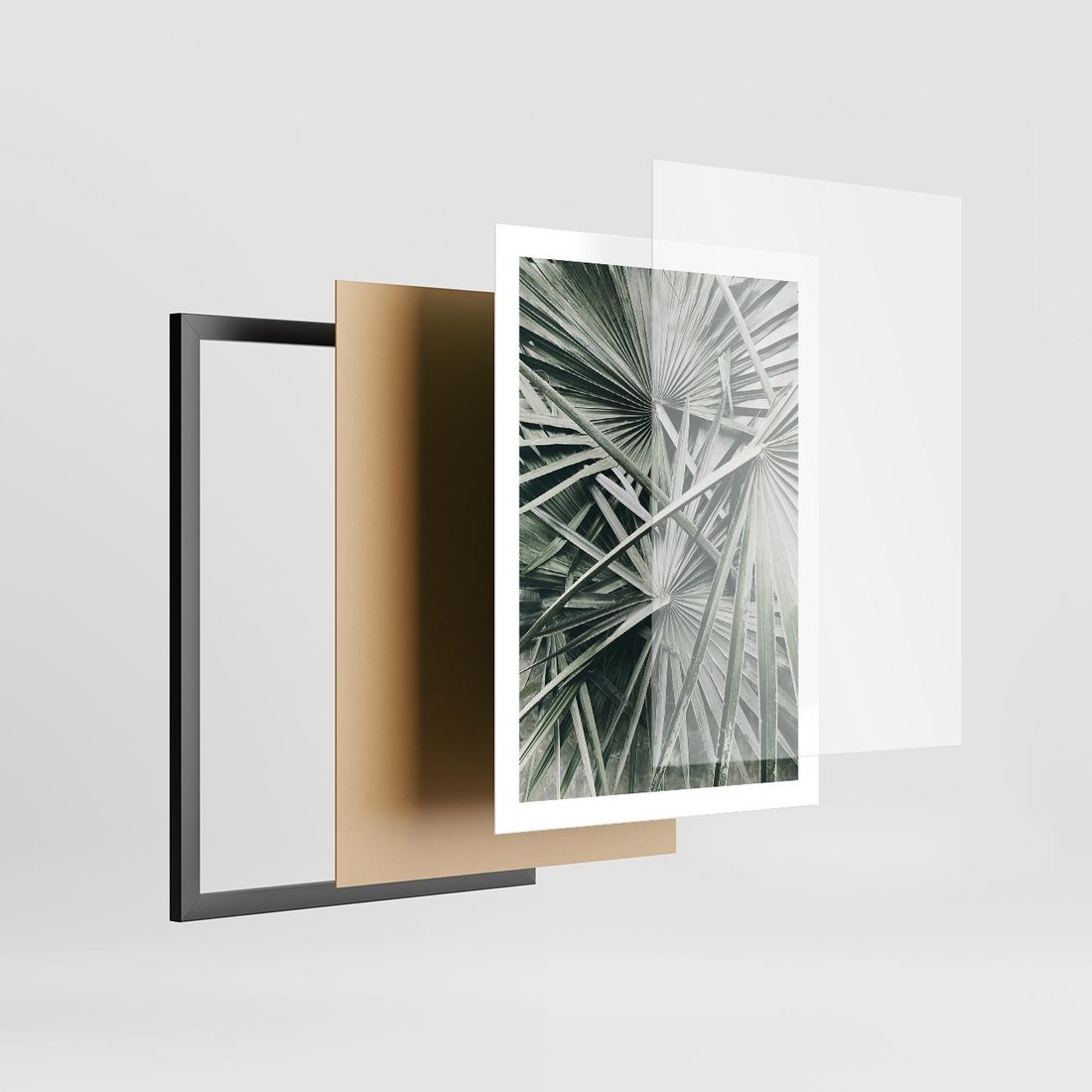 - Plakat w ramie 50x70 - Palmy w Zgaszonej Zieleni