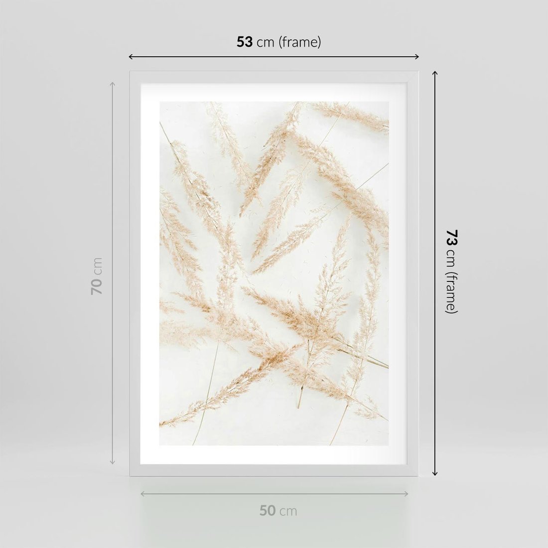 Plakat w ramie 50x70 - Pampas w Stylu Boho: Kompozycja Natury - suche trawy, pampas - rama biała