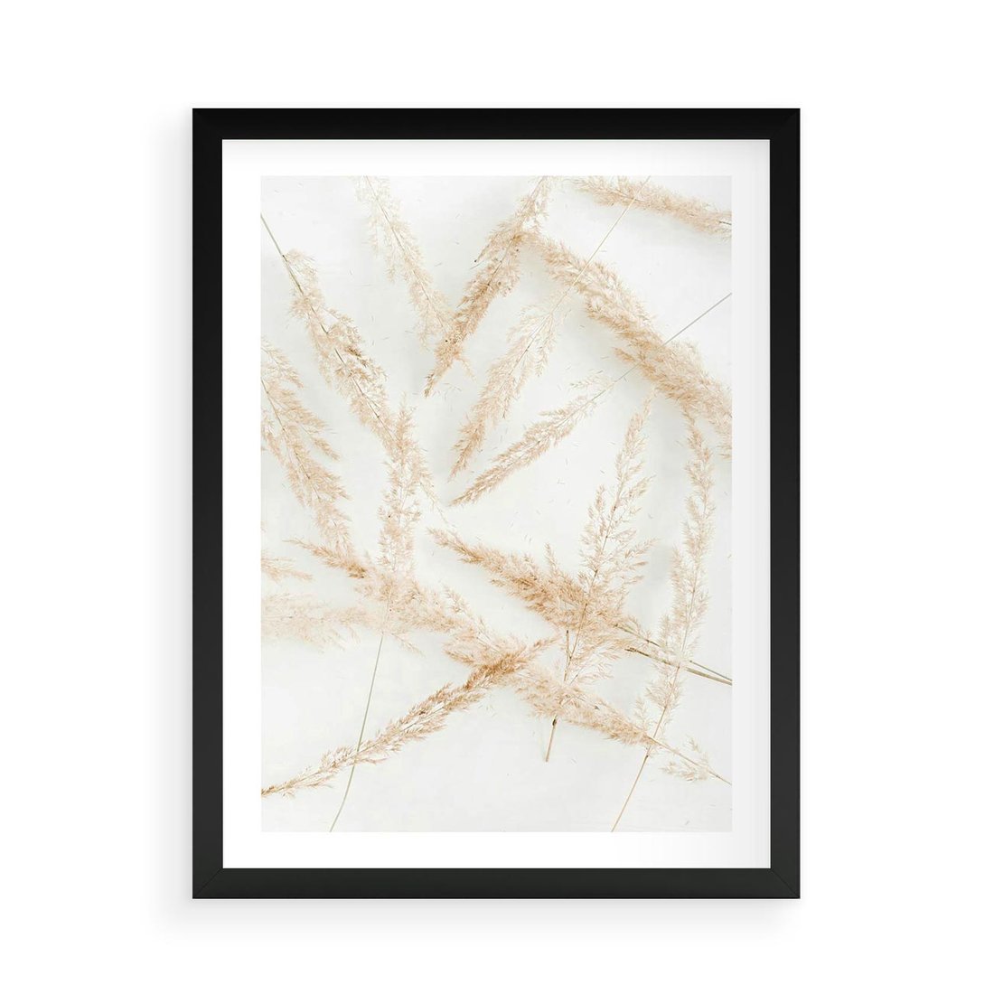 Plakat w ramie 50x70 - Pampas w Stylu Boho: Kompozycja Natury - suche trawy, pampas - rama czarna