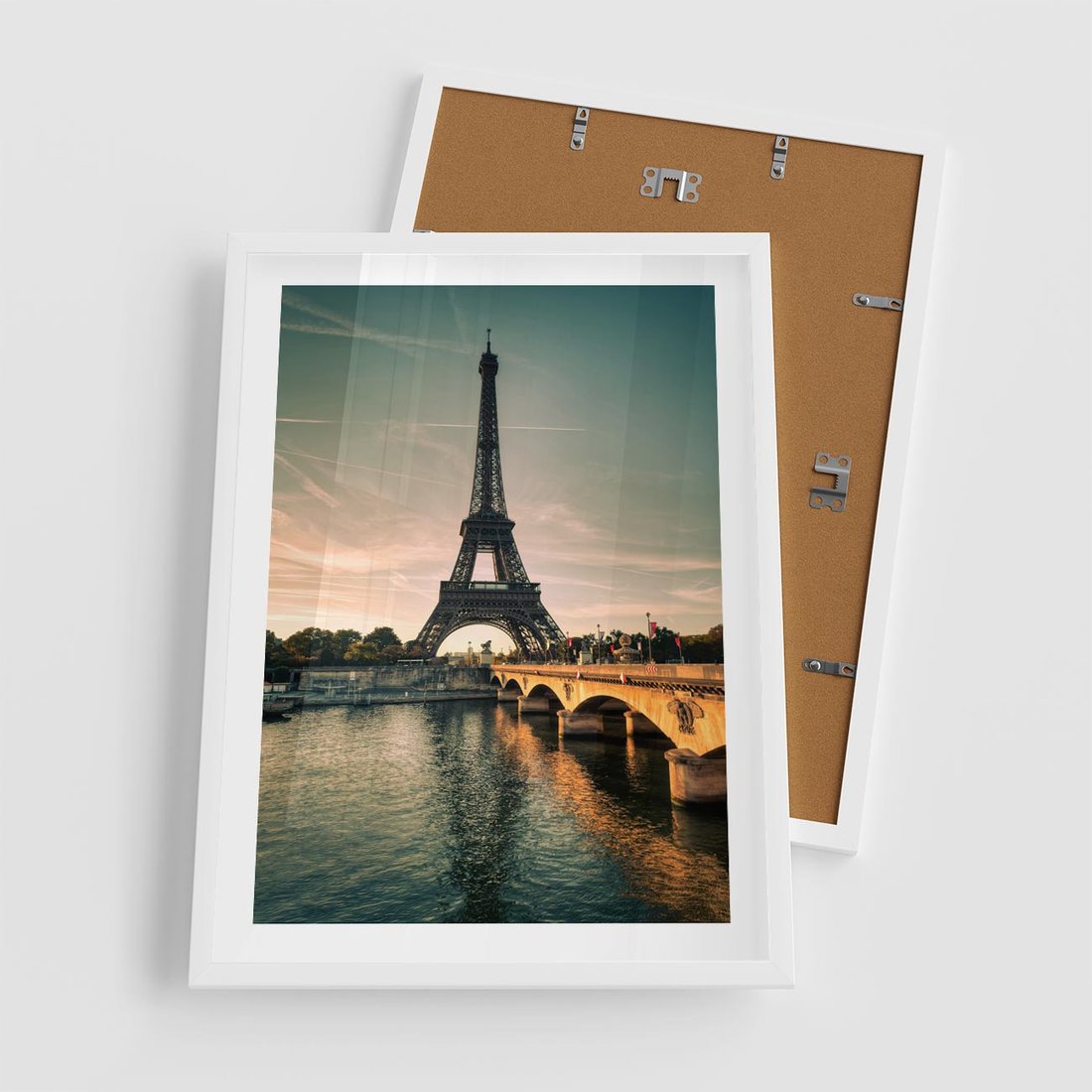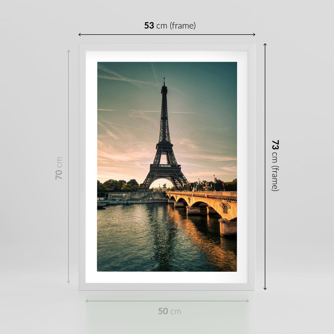 Plakat w ramie 50x70 - Paryski Szczyt - Paryż, wieża - rama biała