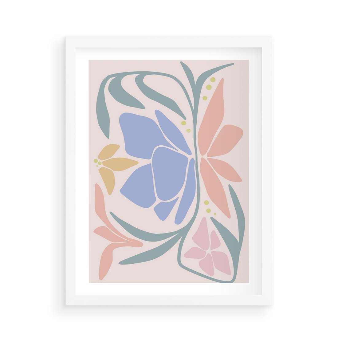 Plakat w ramie 50x70 - Pastele Kwiatowych Plam - pastelowe kwiaty, na beżowym tle - rama biała