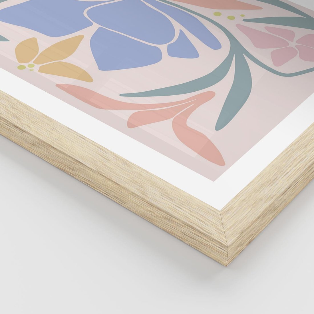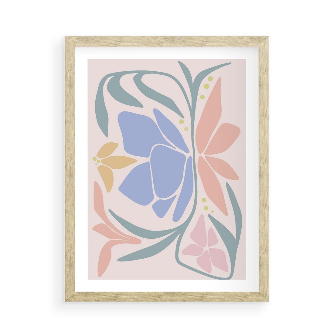 Plakat w ramie 50x70 - Pastele Kwiatowych Plam - pastelowe kwiaty, na beżowym tle - rama drewno