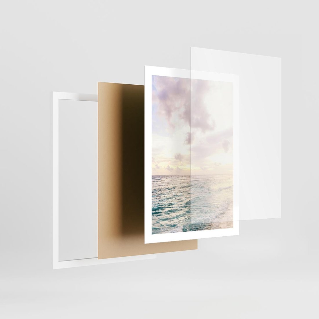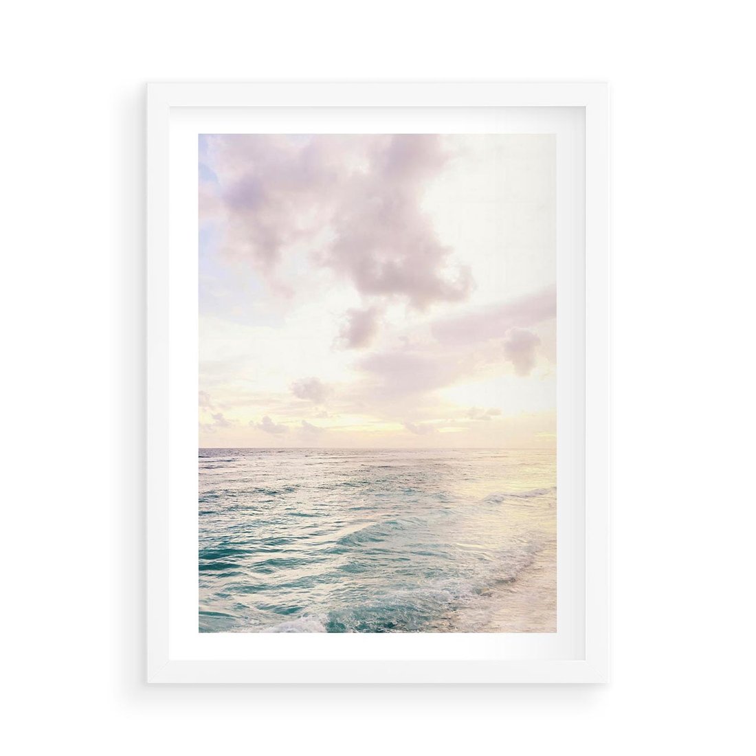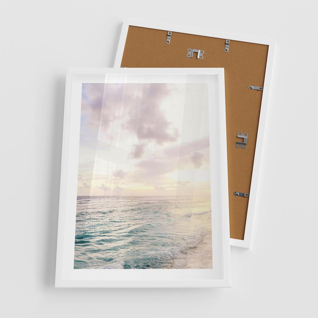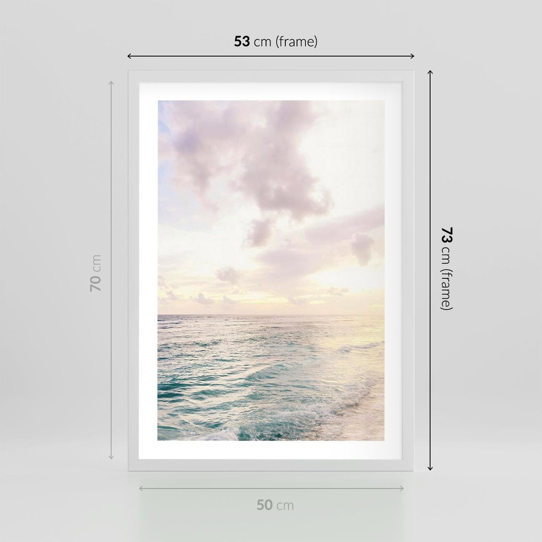 Plakat w ramie 50x70 - Pastelowa Plaża - plaża, pastelowe kolory - rama biała