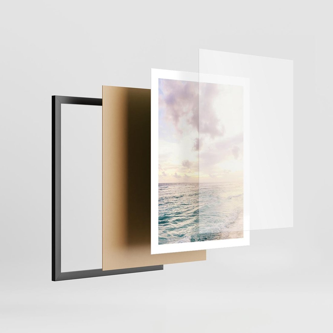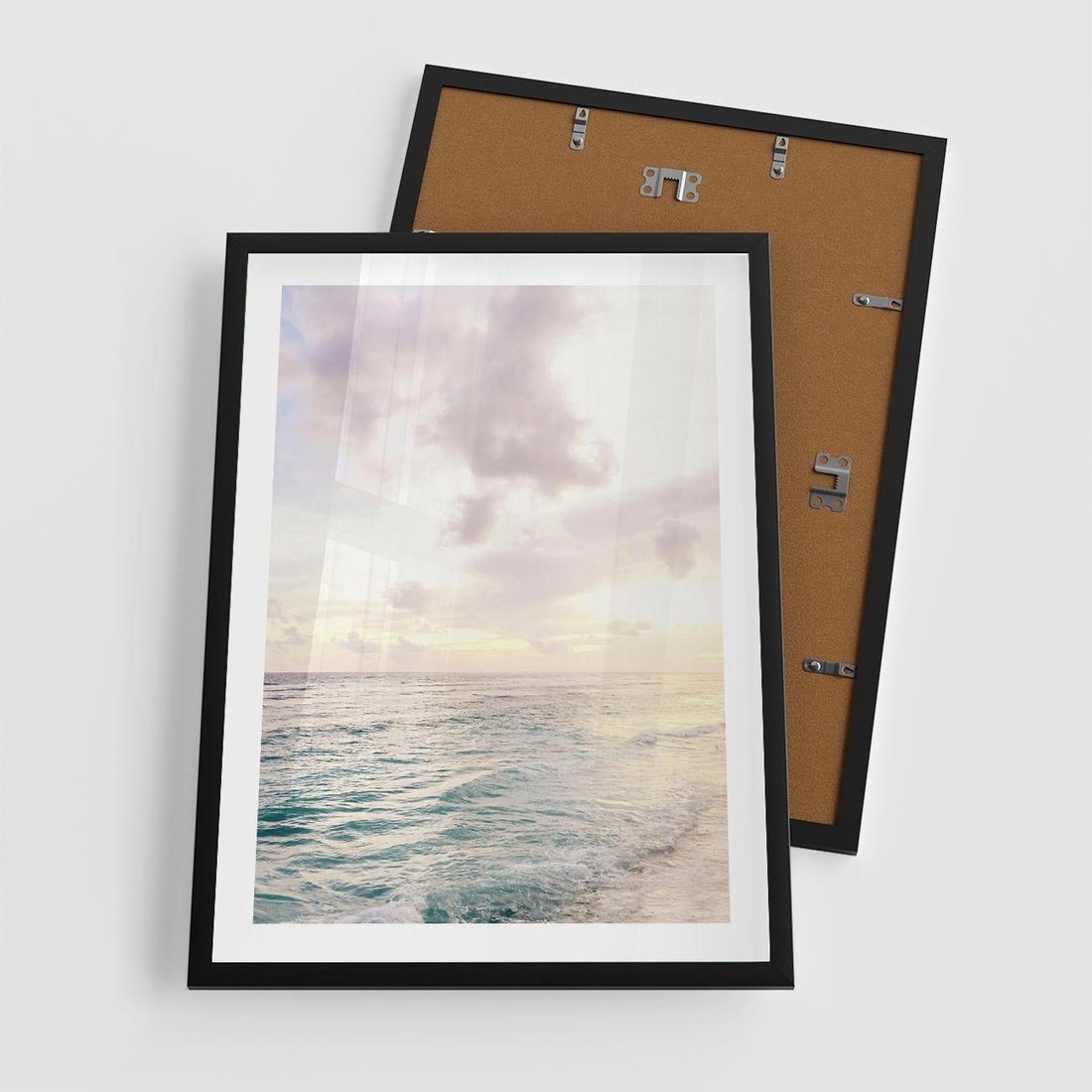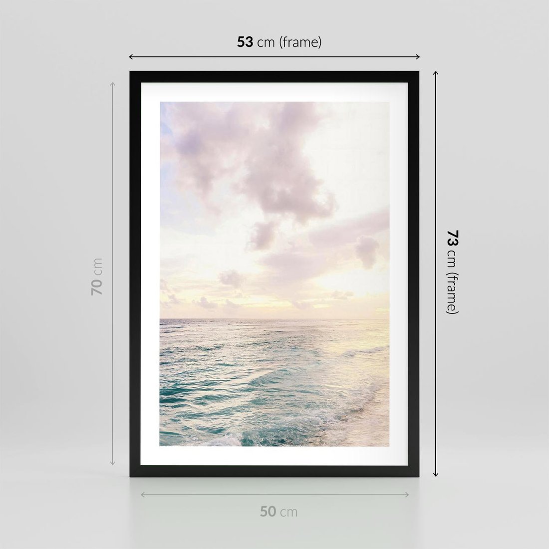 Plakat w ramie 50x70 - Pastelowa Plaża - plaża, pastelowe kolory - rama czarna
