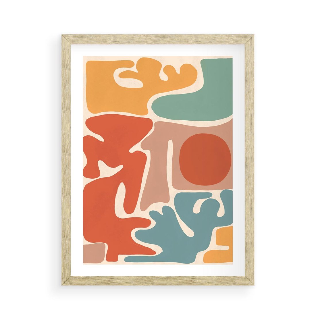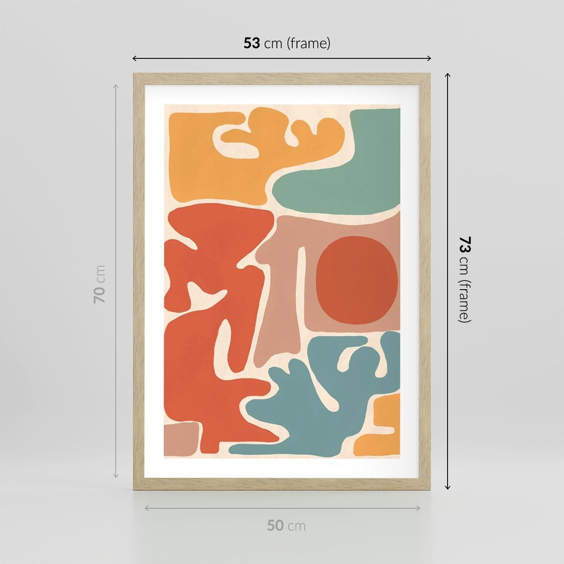Plakat w ramie 50x70 - Pastelowa Symfonia Kształtów - abstrakcyjne kolorowe formy, pastelowe kolory - rama drewno