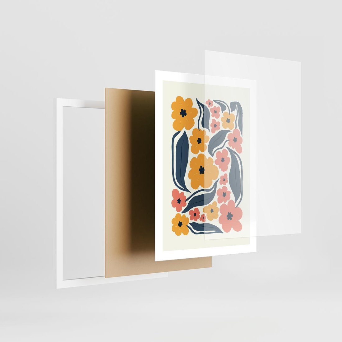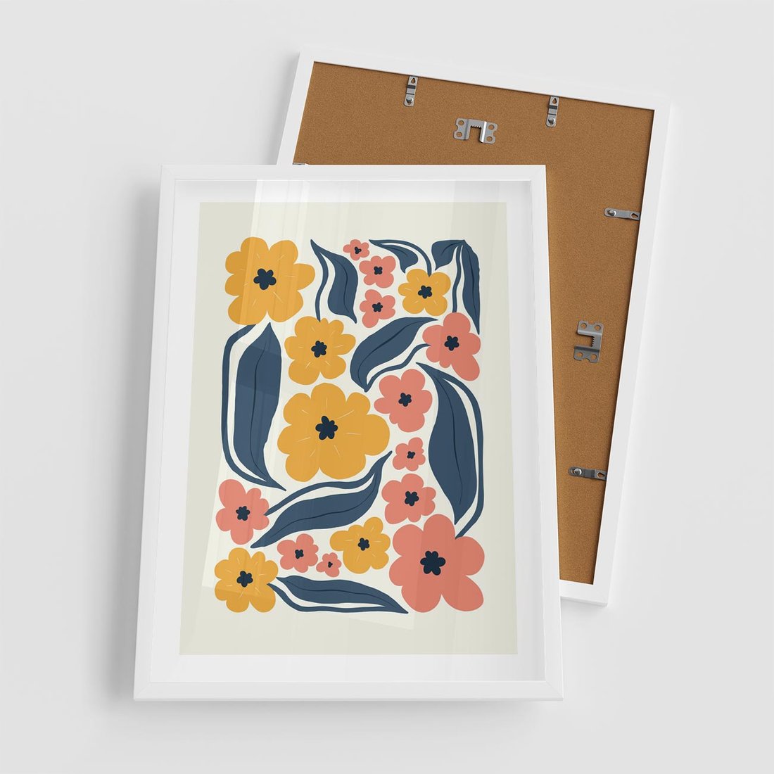 Ten plakat w nowoczesnej sztuce abstrakcji przedstawia pastelowe kwiatowe impresje. Kompozycja tworzy unikalną wizję natury, łącząc delikatność kwiatów z wyrazistą nowoczesnością.