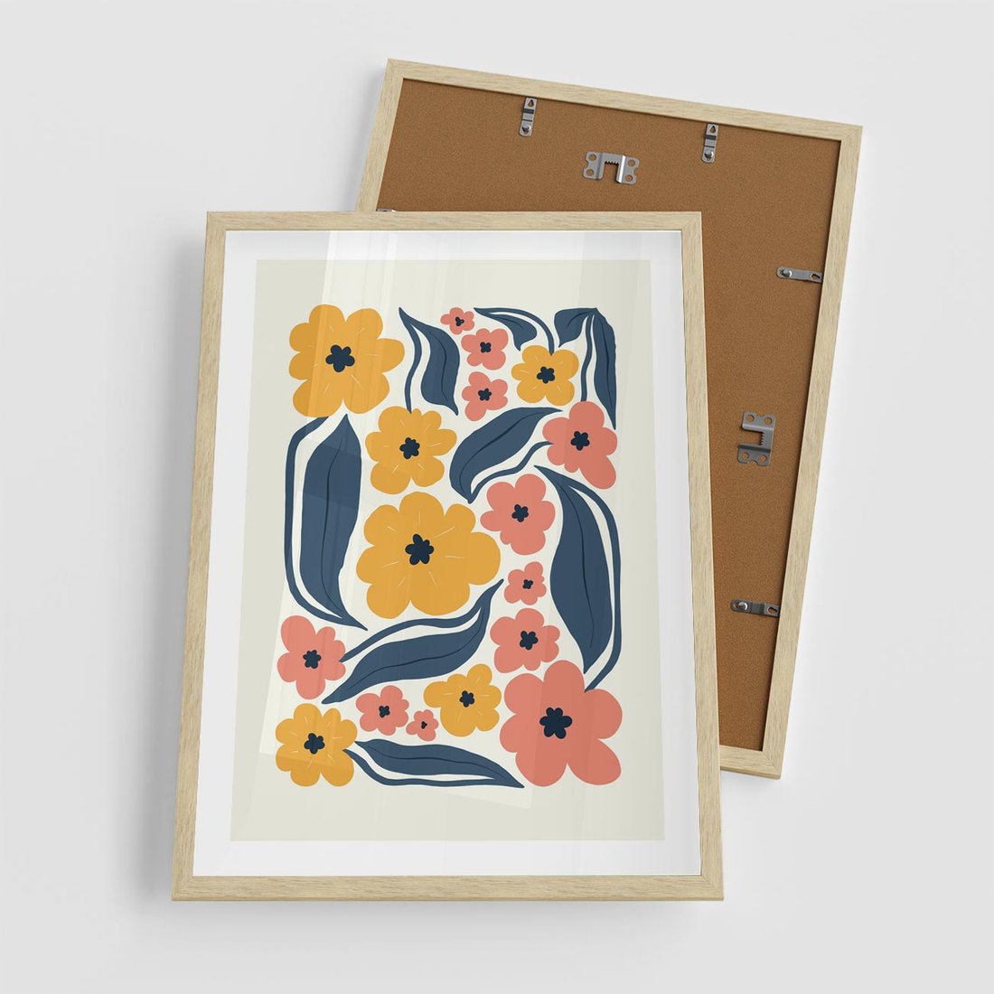 Ten plakat w nowoczesnej sztuce abstrakcji przedstawia pastelowe kwiatowe impresje. Kompozycja tworzy unikalną wizję natury, łącząc delikatność kwiatów z wyrazistą nowoczesnością.